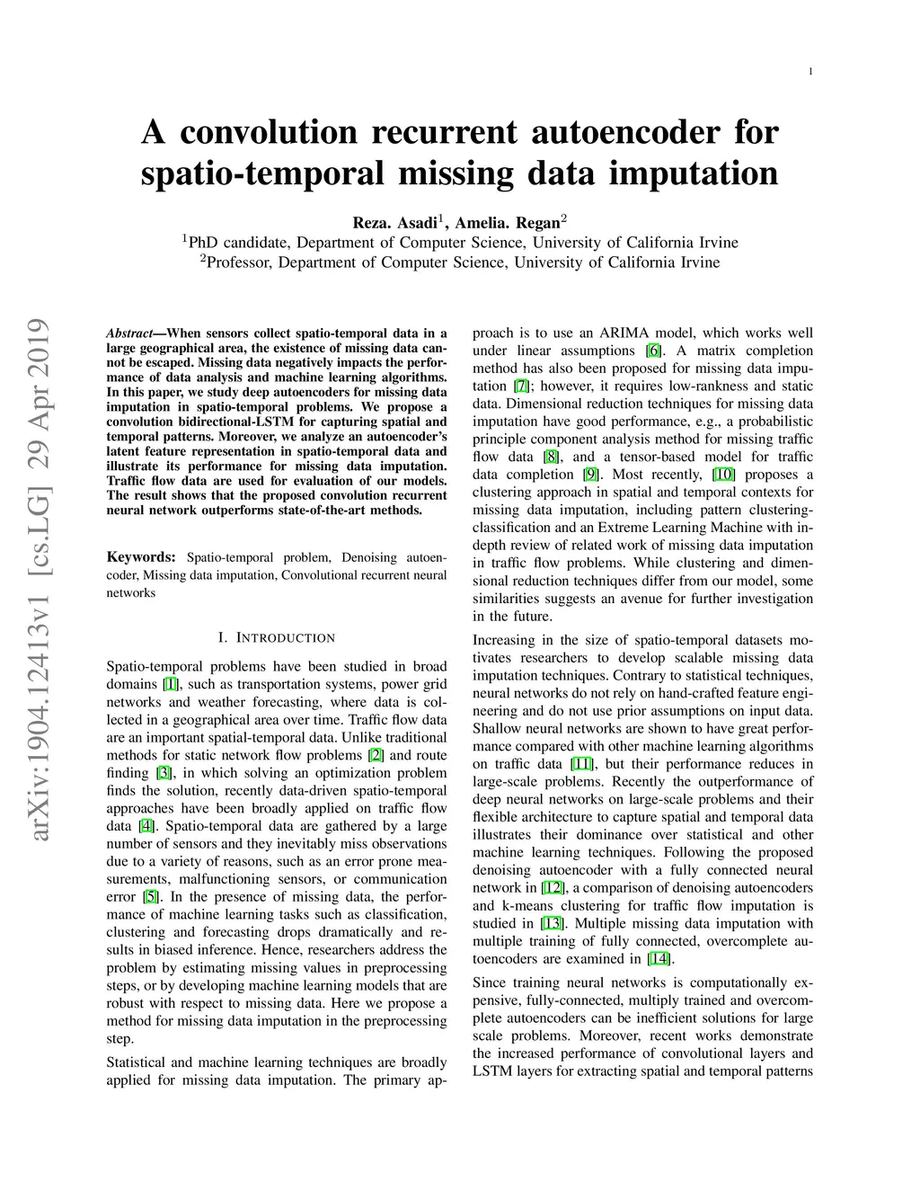 A convolution recurrent autoencoder for spatio-temporal missing data