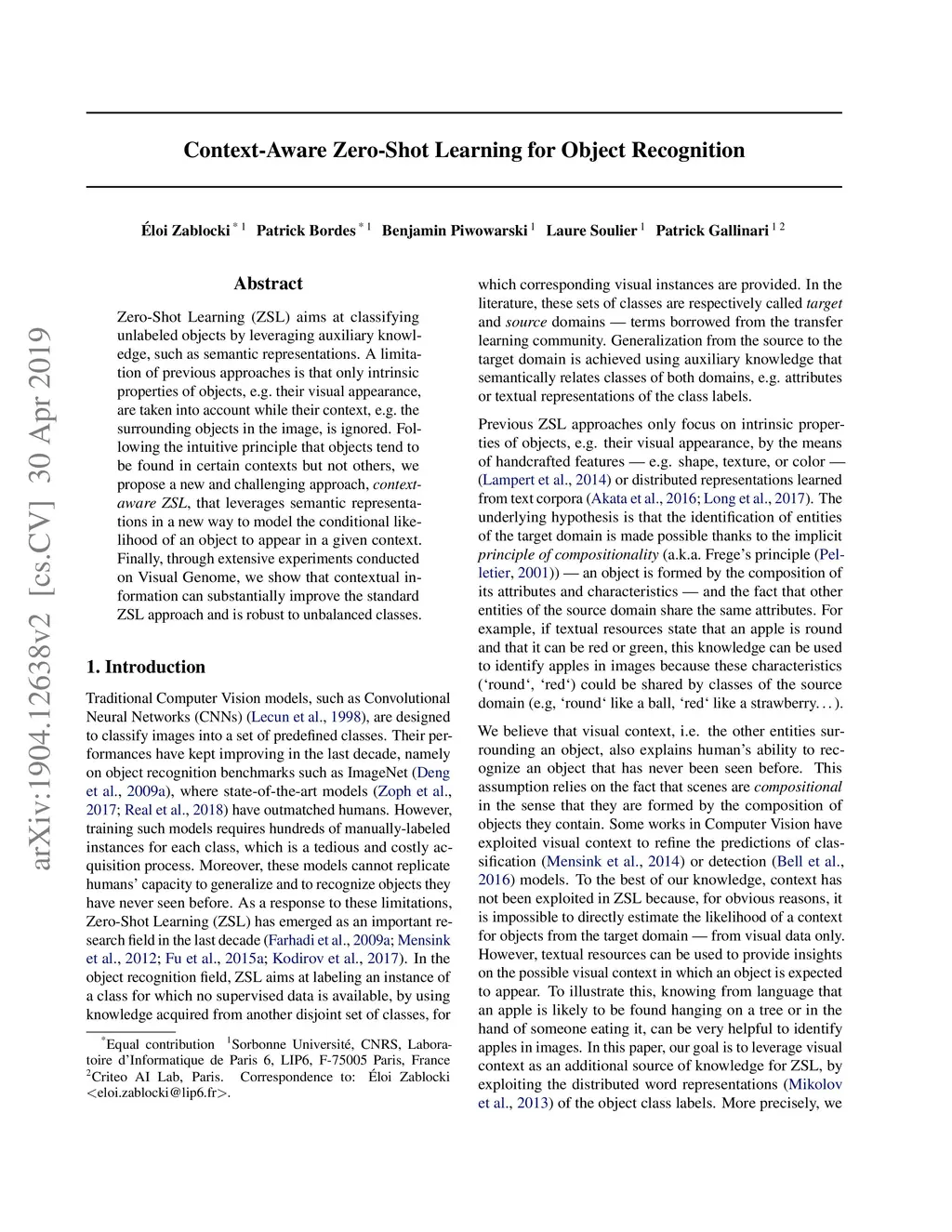 Context-Aware Zero-Shot Learning for Object Recognition