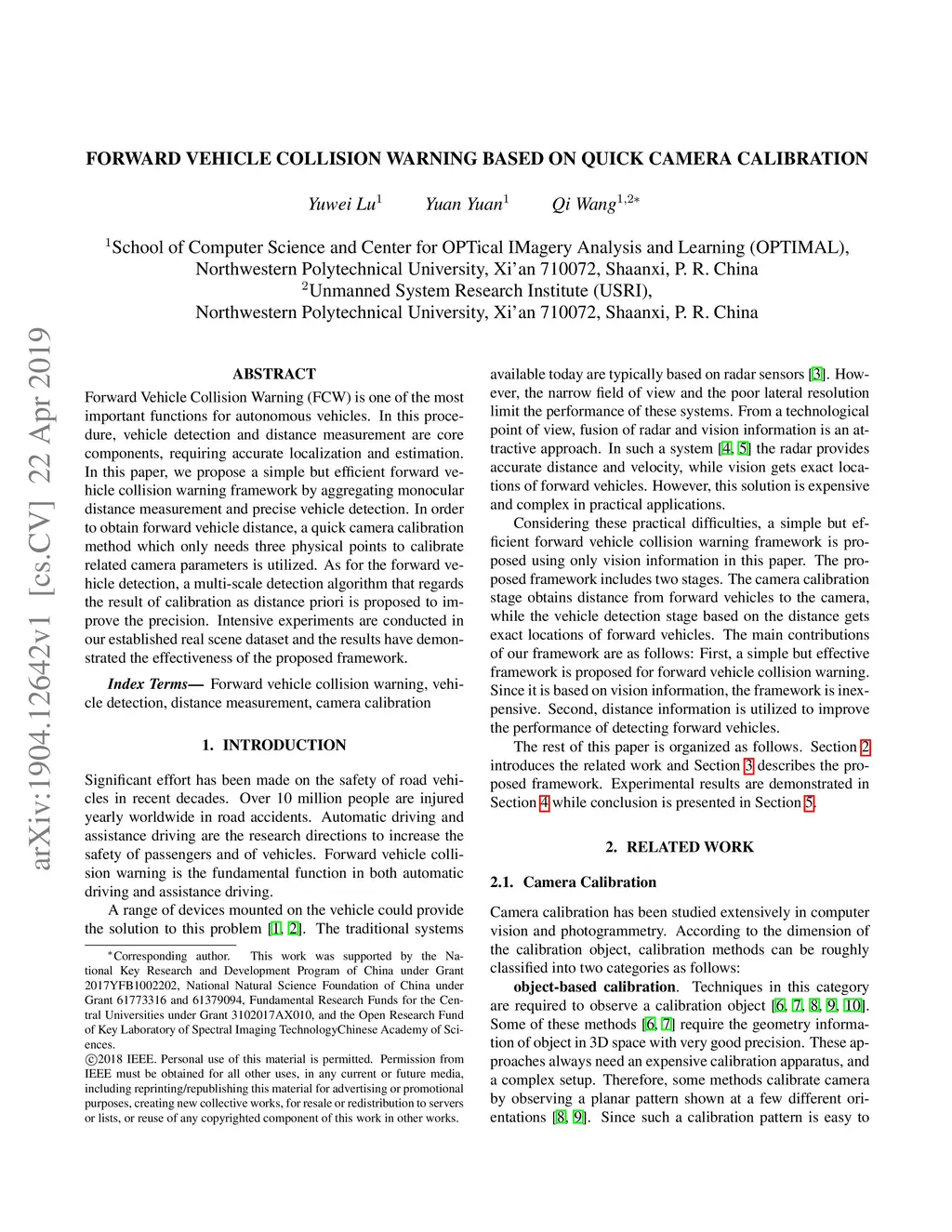 Forward Vehicle Collision Warning Based on Quick Camera Calibration