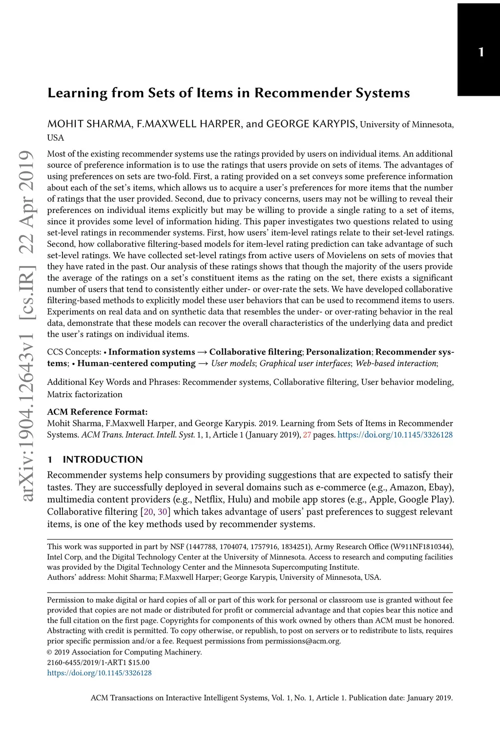 Learning from Sets of Items in Recommender Systems