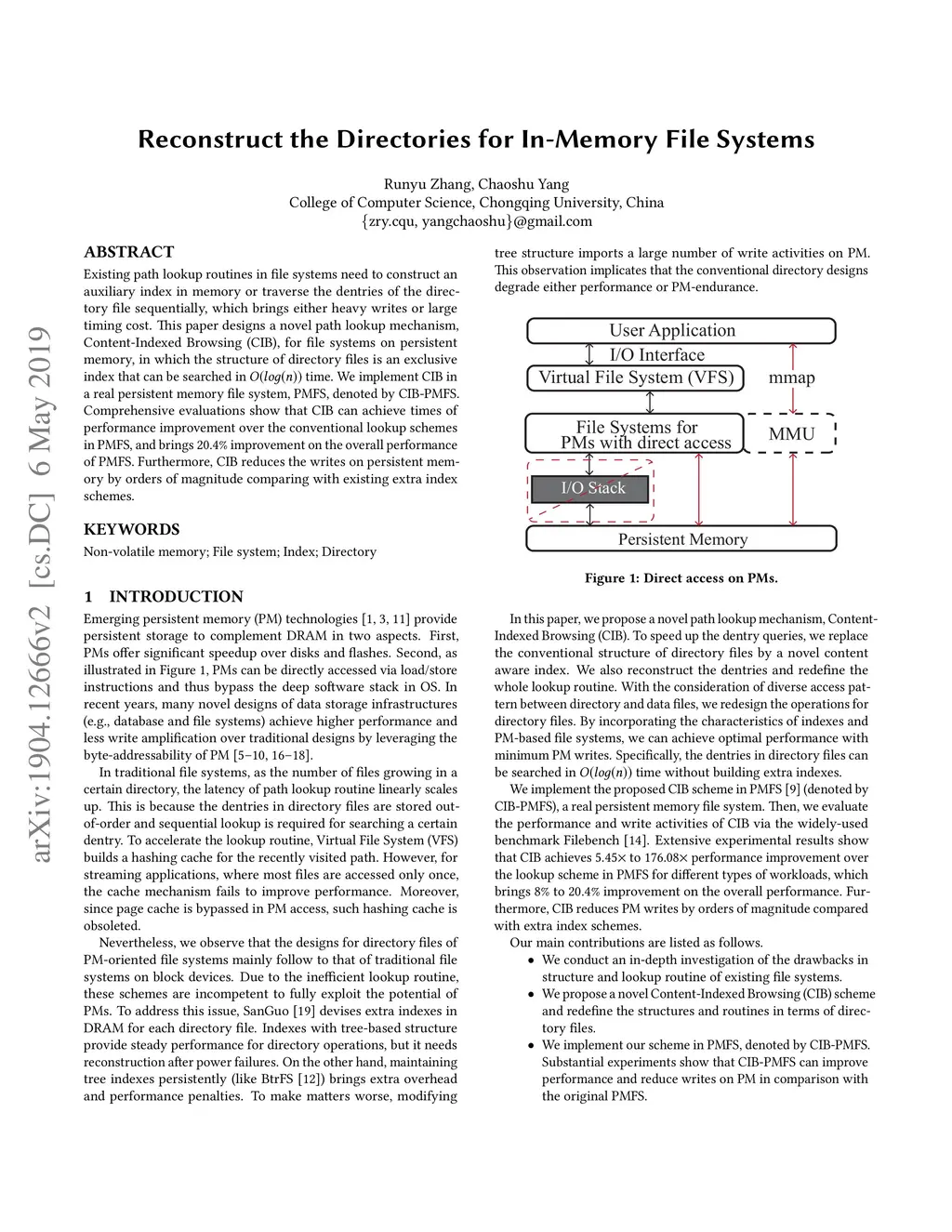 Existing path lookup routines in file systems need to construct an auxiliary index in memory or traverse the dentries of the directory file sequentially, which brings either heavy writes or large timing cost. This paper designs a novel path lookup mechanism, Content-Indexed Browsing (CIB), for file systems on persistent memory, in which the structure of directory files is an exclusive index that can be searched in time. We implement CIB in a real persistent memory file system, PMFS, denoted by CIB-PMFS. Comprehensive evaluations show that CIB can achieve times of performance improvement over the conventional lookup schemes in PMFS, and brings 20.4\% improvement on the overall performance of PMFS. Furthermore, CIB reduces the writes on persistent memory by orders of magnitude comparing with existing extra index schemes.