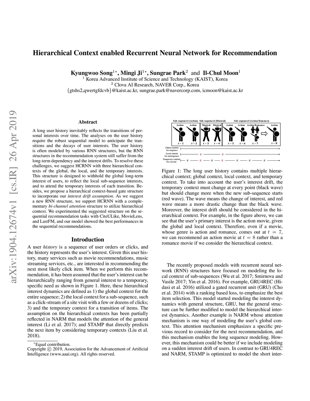 Hierarchical Context enabled Recurrent Neural Network for Recommendation
