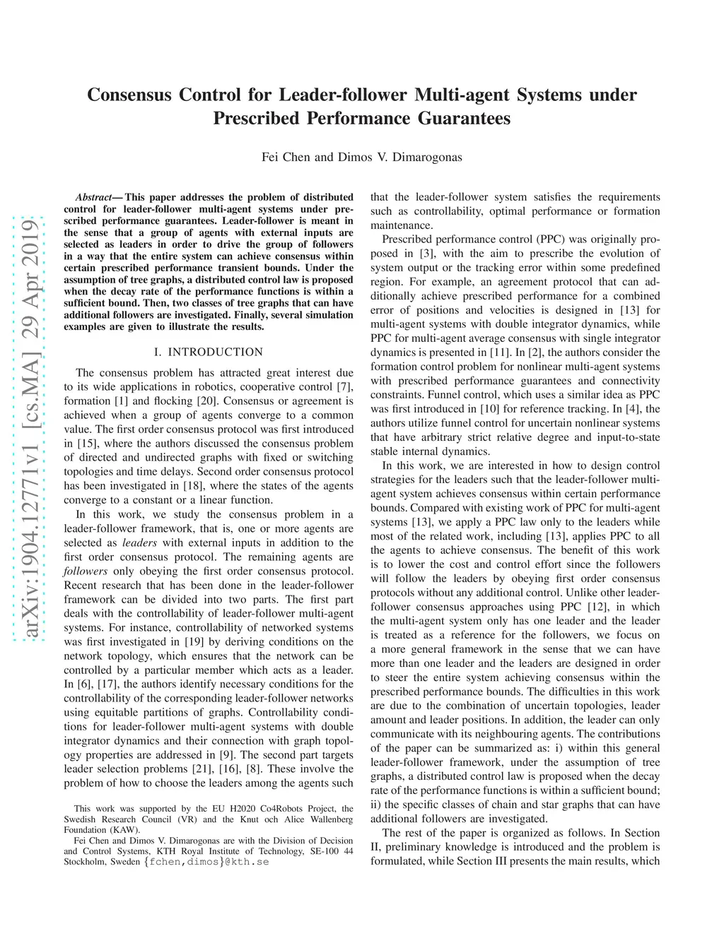 This paper addresses the problem of distributed control for leader-follower multi-agent systems under prescribed performance guarantees. Leader-follower is meant in the sense that a group of agents with external inputs are selected as leaders in order to drive the group of followers in a way that the entire system can achieve consensus within certain prescribed performance transient bounds. Under the assumption of tree graphs, a distributed control law is proposed when the decay rate of the performance functions is within a sufficient bound. Then, two classes of tree graphs that can have additional followers are investigated. Finally, several simulation examples are given to illustrate the results.