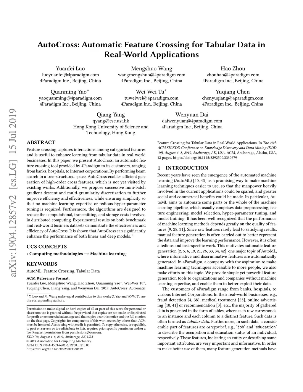 AutoCross: Automatic Feature Crossing for Tabular Data in Real-World