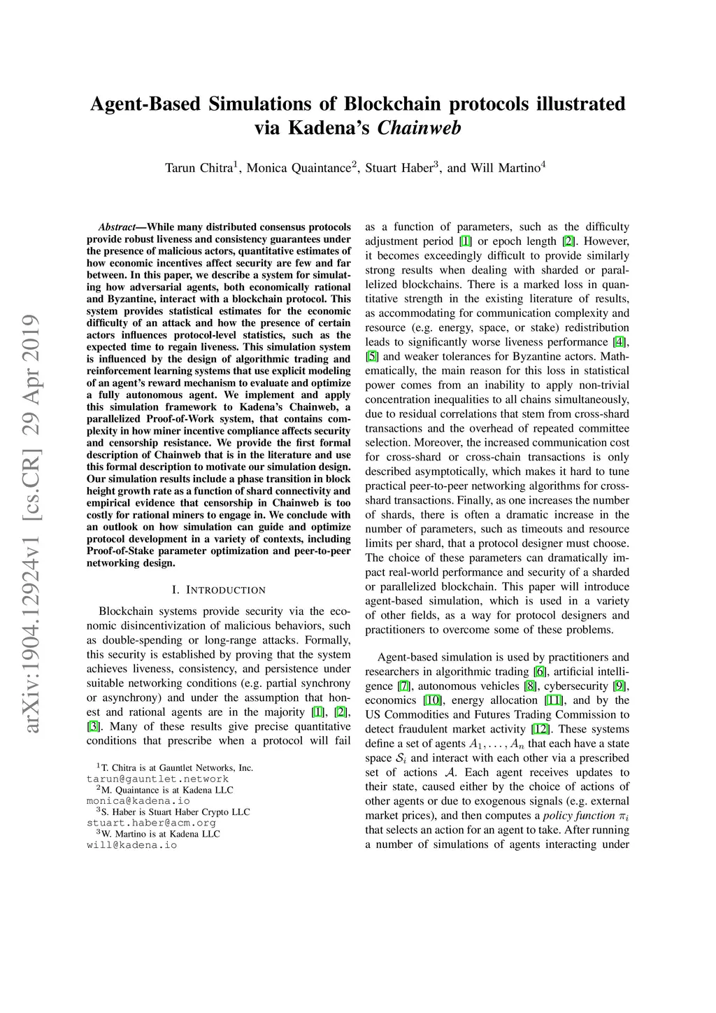 Agent-Based Simulations of Blockchain protocols illustrated via Kadena's