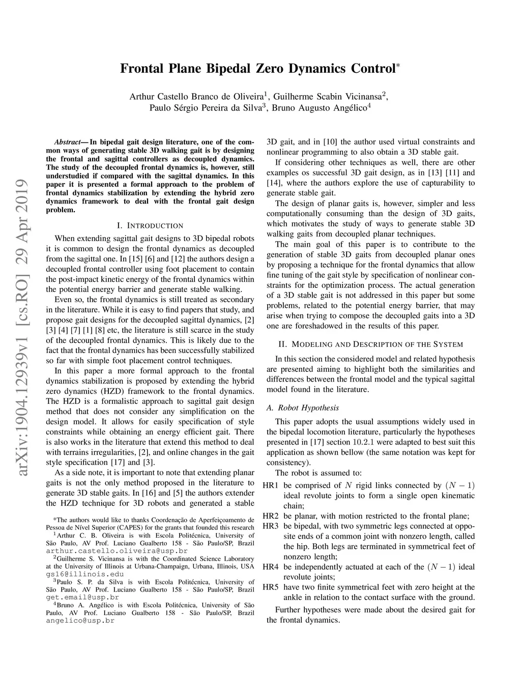 In bipedal gait design literature, one of the common ways of generating stable 3D walking gait is by designing the frontal and sagittal controllers as decoupled dynamics. The study of the decoupled frontal dynamics is, however, still understudied if compared with the sagittal dynamics. In this paper it is presented a formal approach to the problem of frontal dynamics stabilization by extending the hybrid zero dynamics framework to deal with the frontal gait design problem.