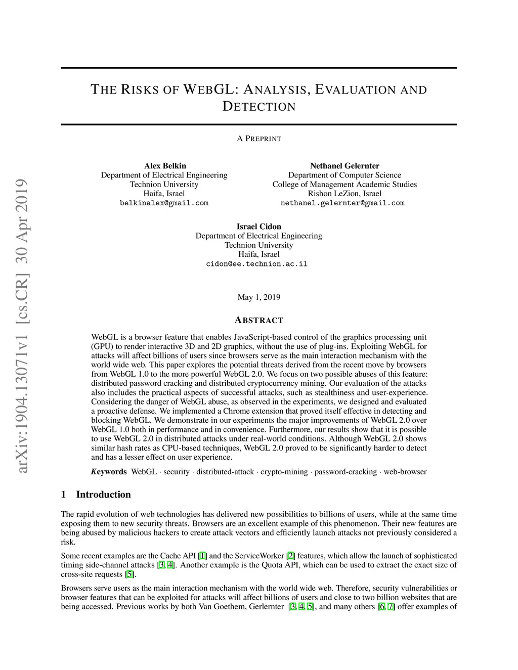 The Risks of WebGL: Analysis, Evaluation and Detection