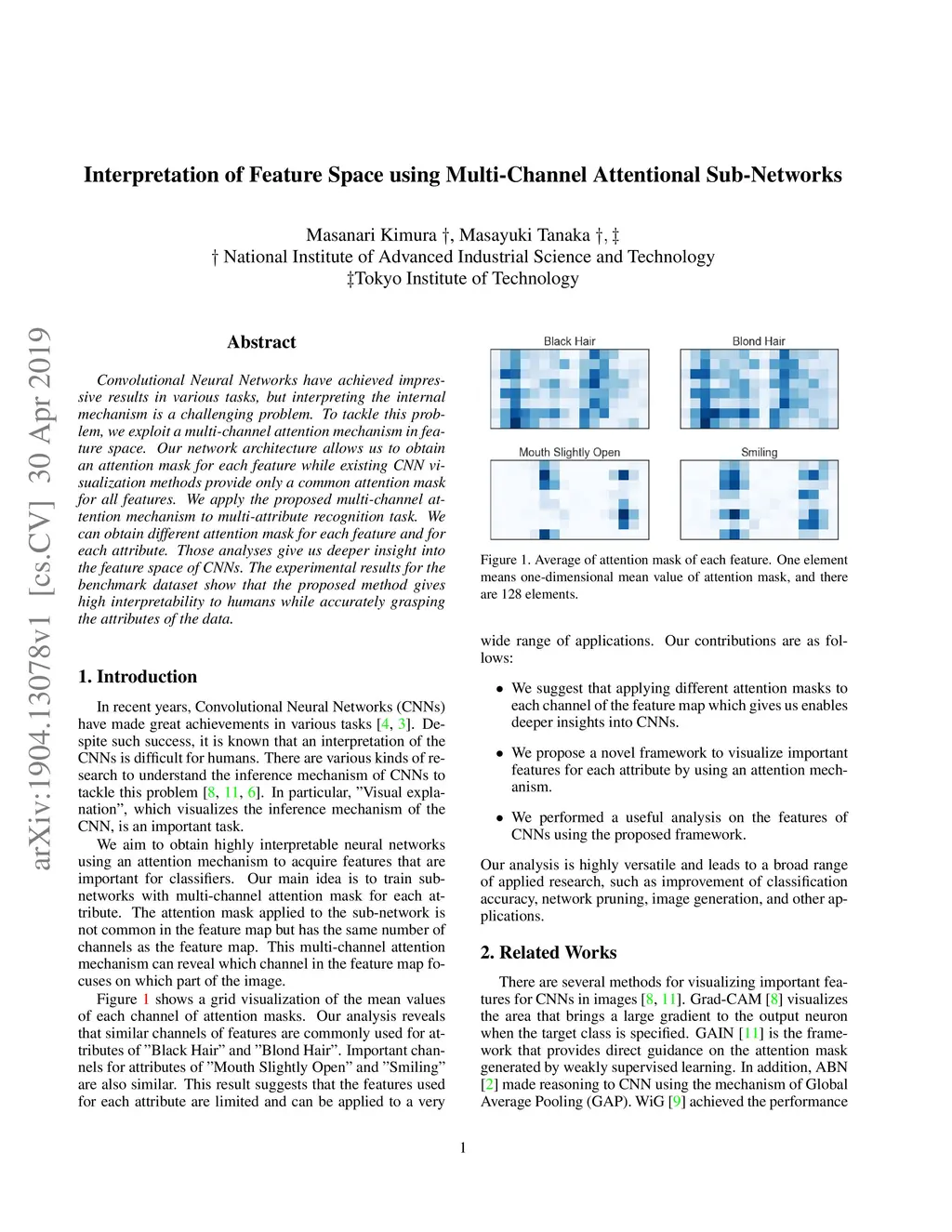 Convolutional Neural Networks have achieved impressive results in various tasks, but interpreting the internal mechanism is a challenging problem. To tackle this problem, we exploit a multi-channel attention mechanism in feature space. Our network architecture allows us to obtain an attention mask for each feature while existing CNN visualization methods provide only a common attention mask for all features. We apply the proposed multi-channel attention mechanism to multi-attribute recognition task. We can obtain different attention mask for each feature and for each attribute. Those analyses give us deeper insight into the feature space of CNNs. The experimental results for the benchmark dataset show that the proposed method gives high interpretability to humans while accurately grasping the attributes of the data.