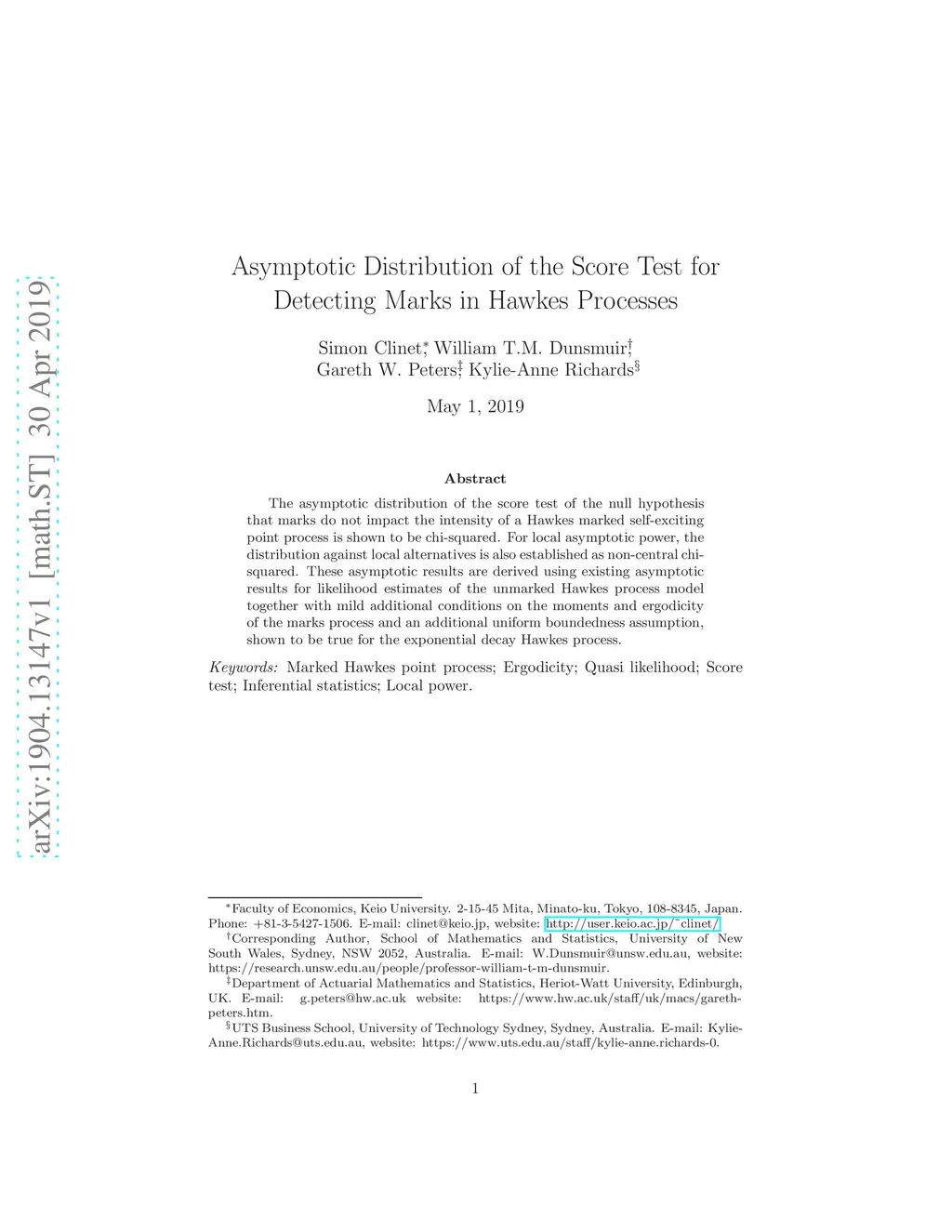 Statistical Inference for Stochastic Processes : An International Journal devoted to Time Series Analysis and the Statistics of Continuous Time Processes and Dynamical Systems (JCTPDS), 2019