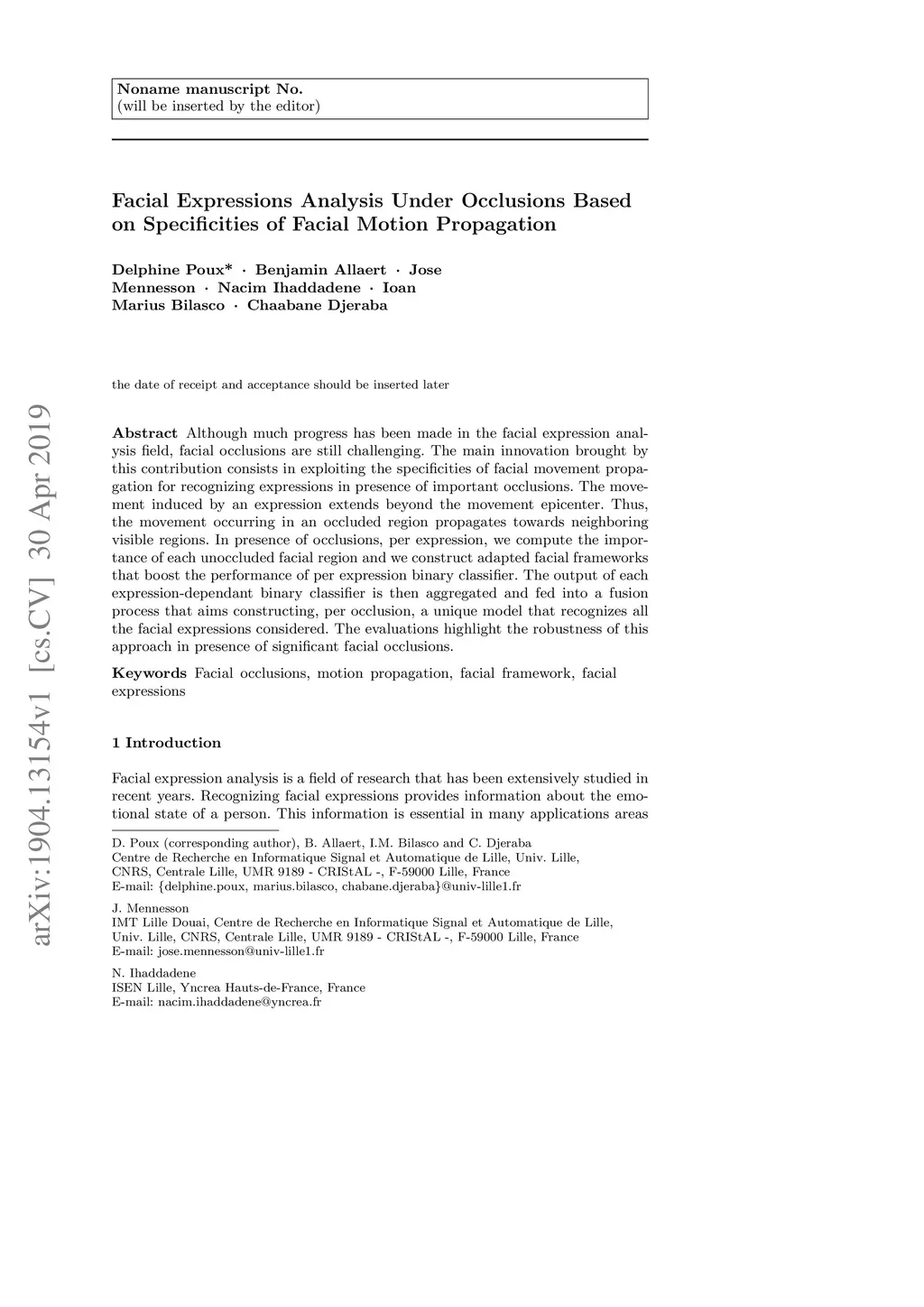 Facial Expressions Analysis Under Occlusions Based on Specificities of