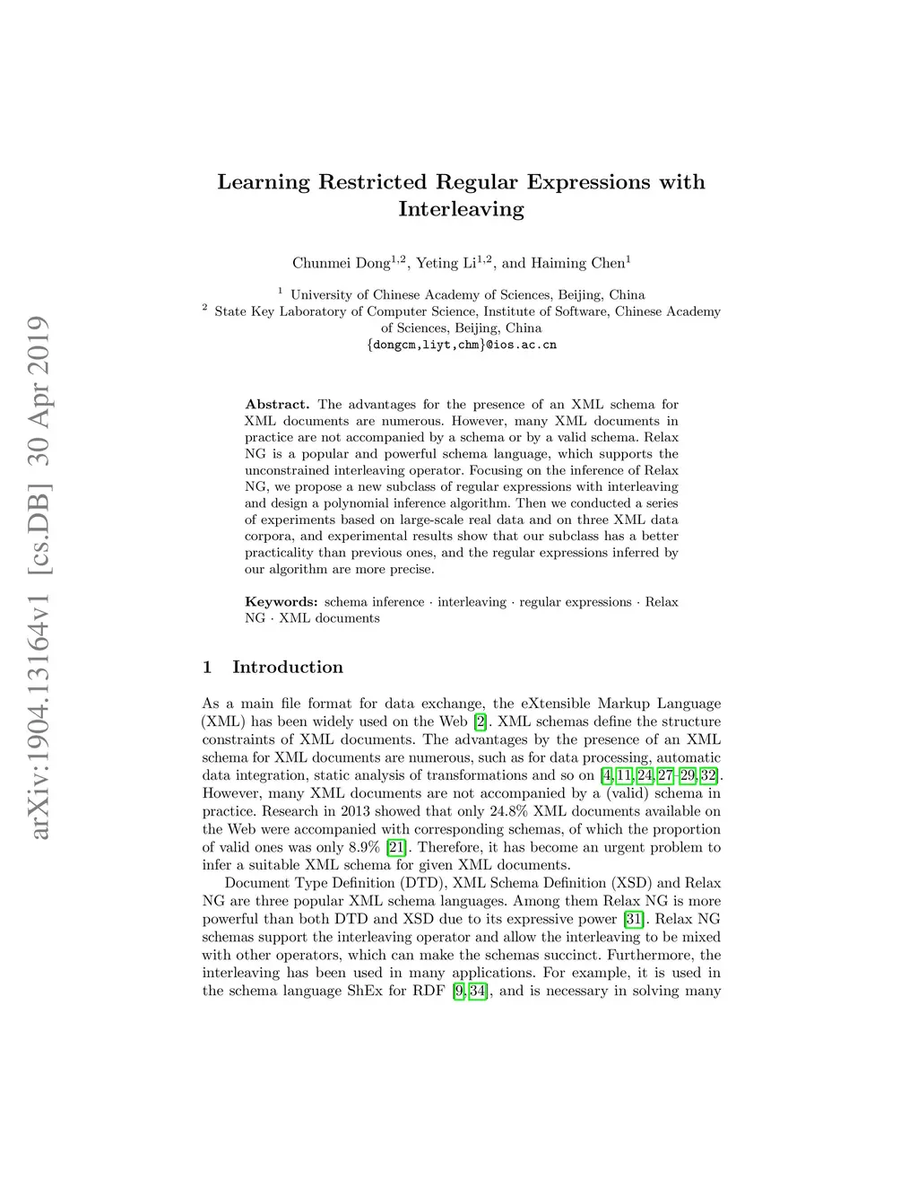 The advantages for the presence of an XML schema for XML documents are numerous. However, many XML documents in practice are not accompanied by a schema or by a valid schema. Relax NG is a popular and powerful schema language, which supports the unconstrained interleaving operator. Focusing on the inference of Relax NG, we propose a new subclass of regular expressions with interleaving and design a polynomial inference algorithm. Then we conducted a series of experiments based on large-scale real data and on three XML data corpora, and experimental results show that our subclass has a better practicality than previous ones, and the regular expressions inferred by our algorithm are more precise.