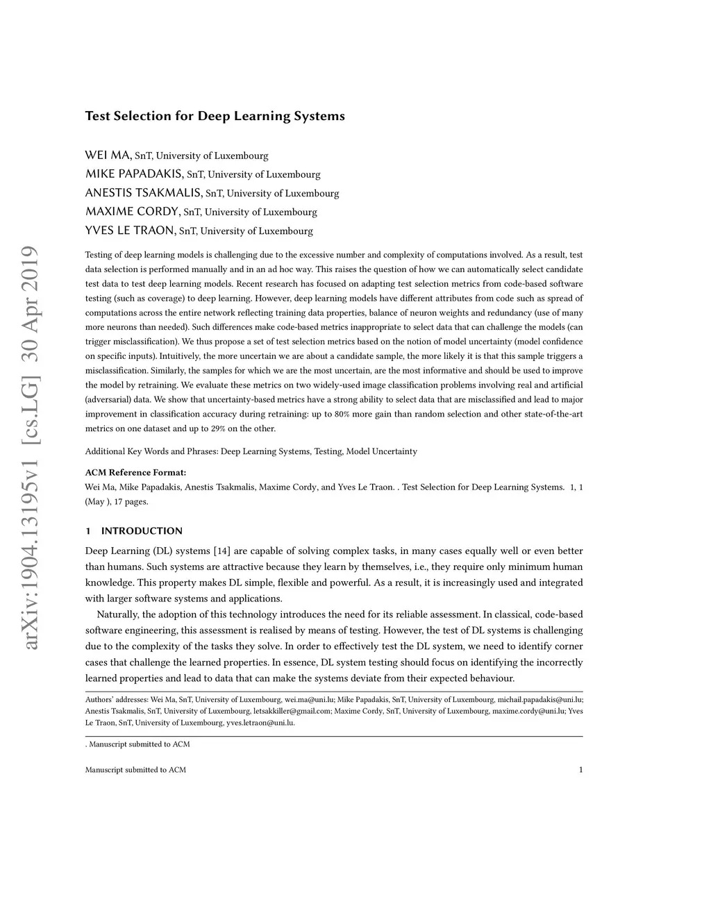 Test Selection for Deep Learning Systems