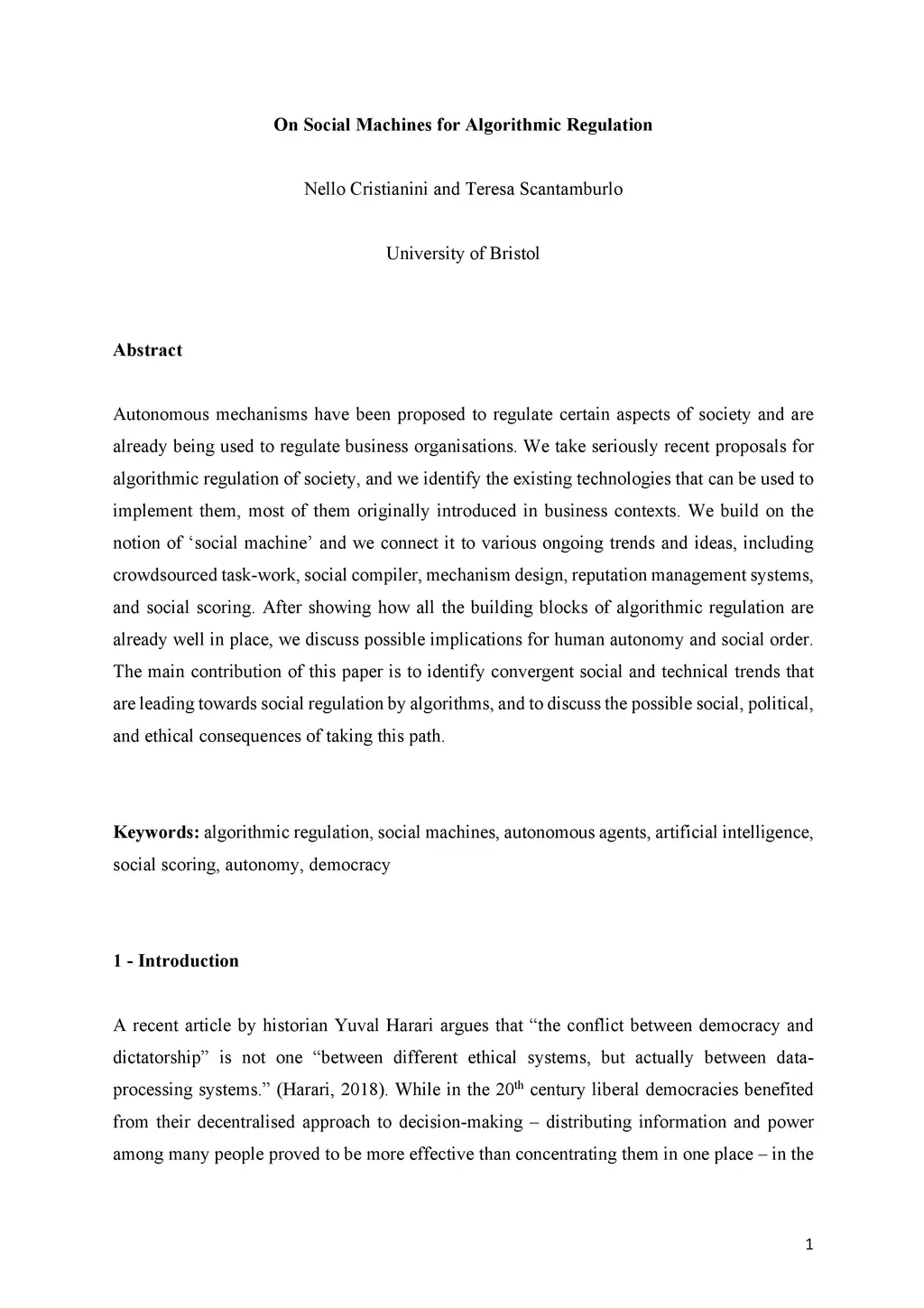 Autonomous mechanisms have been proposed to regulate certain aspects of society and are already being used to regulate business organisations. We take seriously recent proposals for algorithmic regulation of society, and we identify the existing technologies that can be used to implement them, most of them originally introduced in business contexts. We build on the notion of 'social machine' and we connect it to various ongoing trends and ideas, including crowdsourced task-work, social compiler, mechanism design, reputation management systems, and social scoring. After showing how all the building blocks of algorithmic regulation are already well in place, we discuss possible implications for human autonomy and social order. The main contribution of this paper is to identify convergent social and technical trends that are leading towards social regulation by algorithms, and to discuss the possible social, political, and ethical consequences of taking this path.