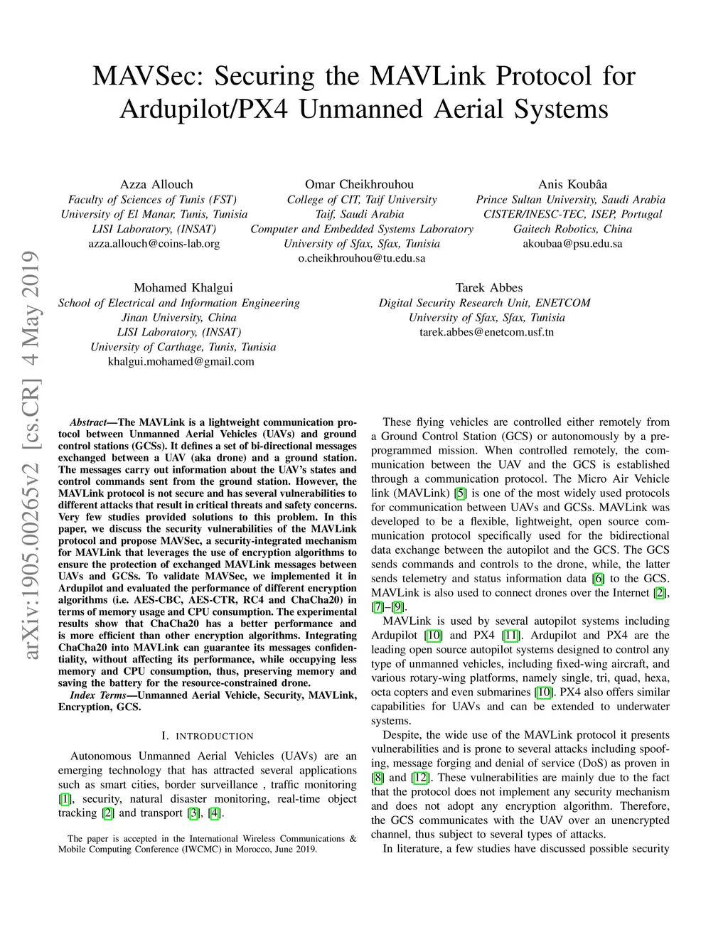 MAVSec: Securing the MAVLink Protocol for Ardupilot/PX4 Unmanned Aerial