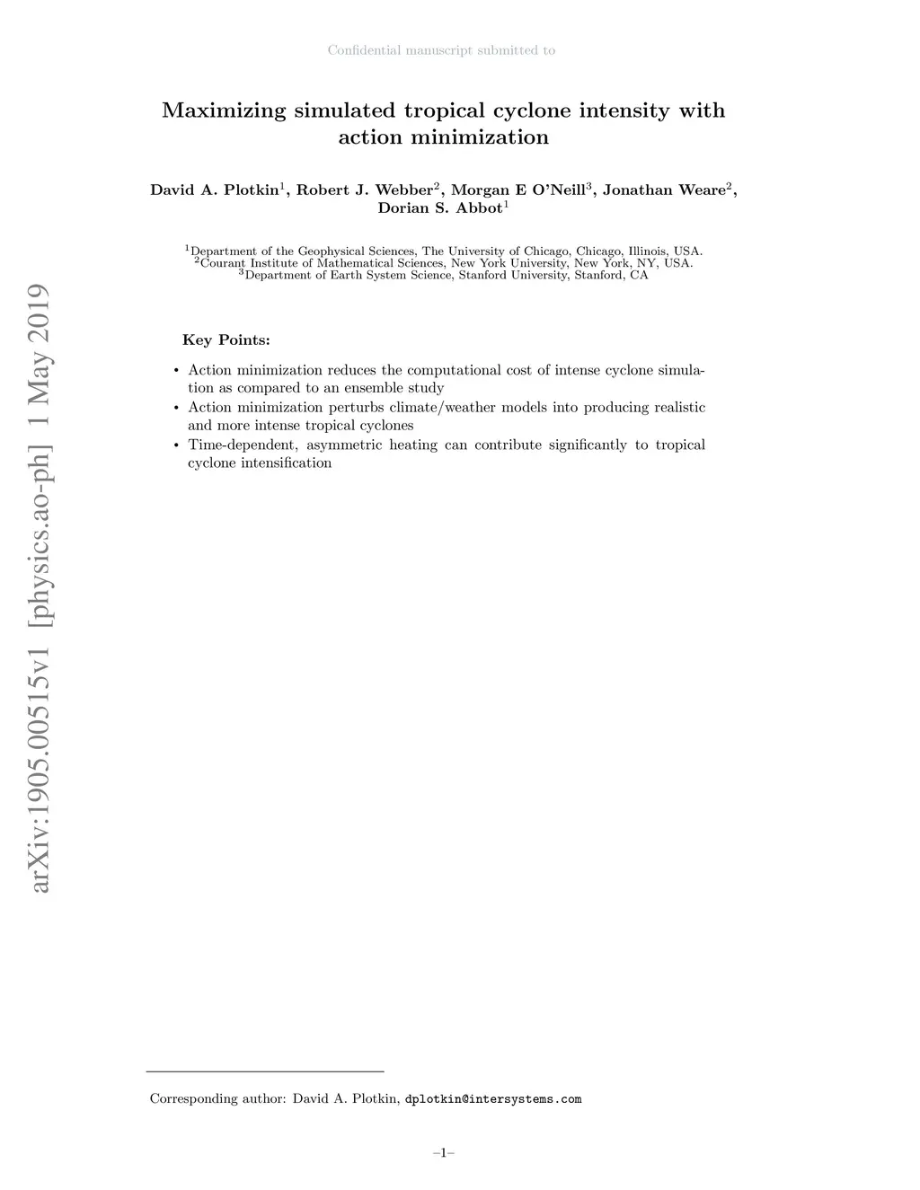 Maximizing simulated tropical cyclone intensity with action minimization