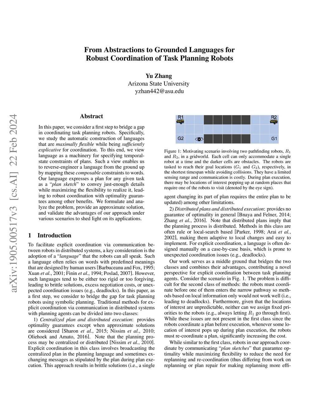 Despite our unique ability to use natural languages, we know little about their origins like how they are created and evolved. The answer lies deeply in the evolution of our cognitive and social abilities over a very long period of time which is beyond our scrutiny. Existing studies on the origin of languages are often focused on the emergence of specific language features (such as recursion) without supporting a comprehensive view. Investigation of restricted language representations, such as temporal logic, unfortunately does not reveal much about the impetus underlying language formation and evolution, since much of their construction is based on natural languages themselves. In this paper, we investigate the origin of "natural languages" in a restricted setting involving only planning agents. Similar to a common view that considers languages as a tool for grounding symbols to semantic meanings, we take the view that a language for planning agents is a tool for grounding symbols to physical configurations. From this perspective, a language is used by the agents to coordinate their behaviors during planning. With a few assumptions, we show that language is closely connected to a type of domain abstractions, based on which a language can be constructed. We study how such abstractions can be identified and discuss how to use them during planning. We apply our method to several domains, discuss the results, and relaxation of the assumptions made.