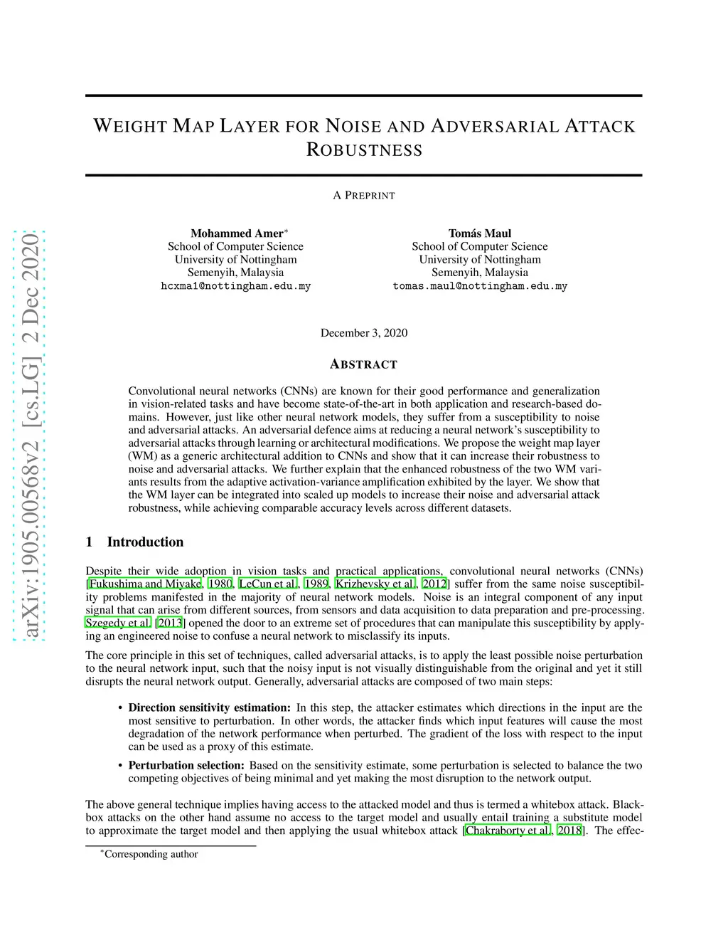Weight Map Layer for Noise and Adversarial Attack Robustness