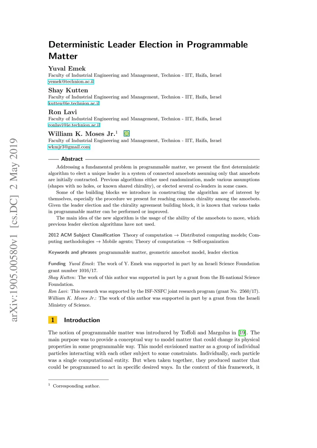 Addressing a fundamental problem in programmable matter, we present the first deterministic algorithm to elect a unique leader in a system of connected amoebots assuming only that amoebots are initially contracted. Previous algorithms either used randomization, made various assumptions (shapes with no holes, or known shared chirality), or elected several co-leaders in some cases. Some of the building blocks we introduce in constructing the algorithm are of interest by themselves, especially the procedure we present for reaching common chirality among the amoebots. Given the leader election and the chirality agreement building block, it is known that various tasks in programmable matter can be performed or improved. The main idea of the new algorithm is the usage of the ability of the amoebots to move, which previous leader election algorithms have not used.