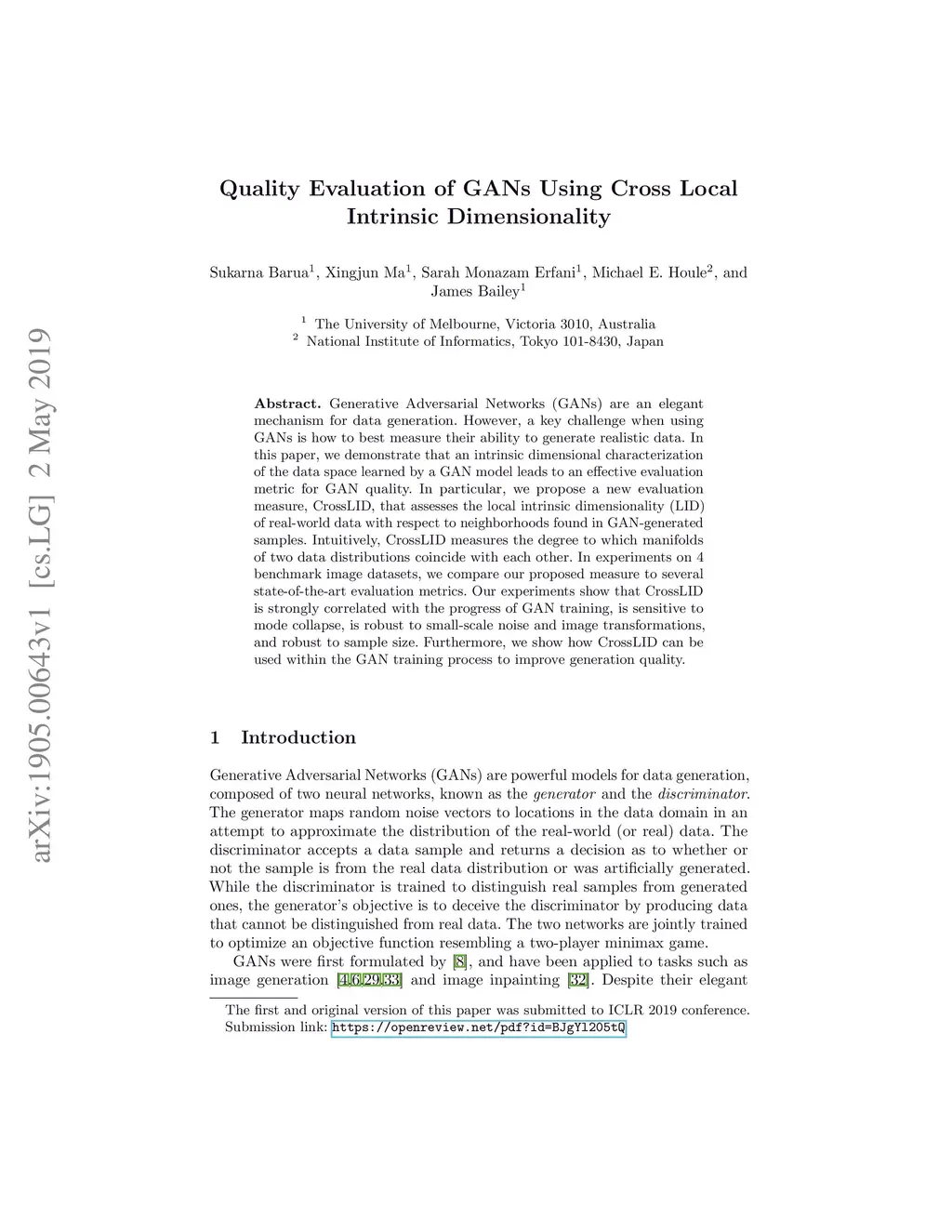 Quality Evaluation of GANs Using Cross Local Intrinsic Dimensionality