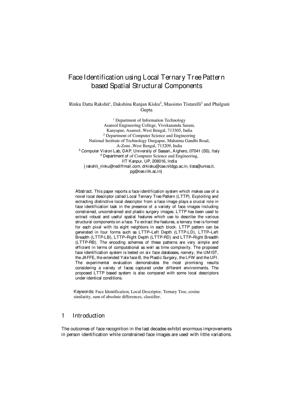 Face Identification using Local Ternary Tree Pattern based Spatial