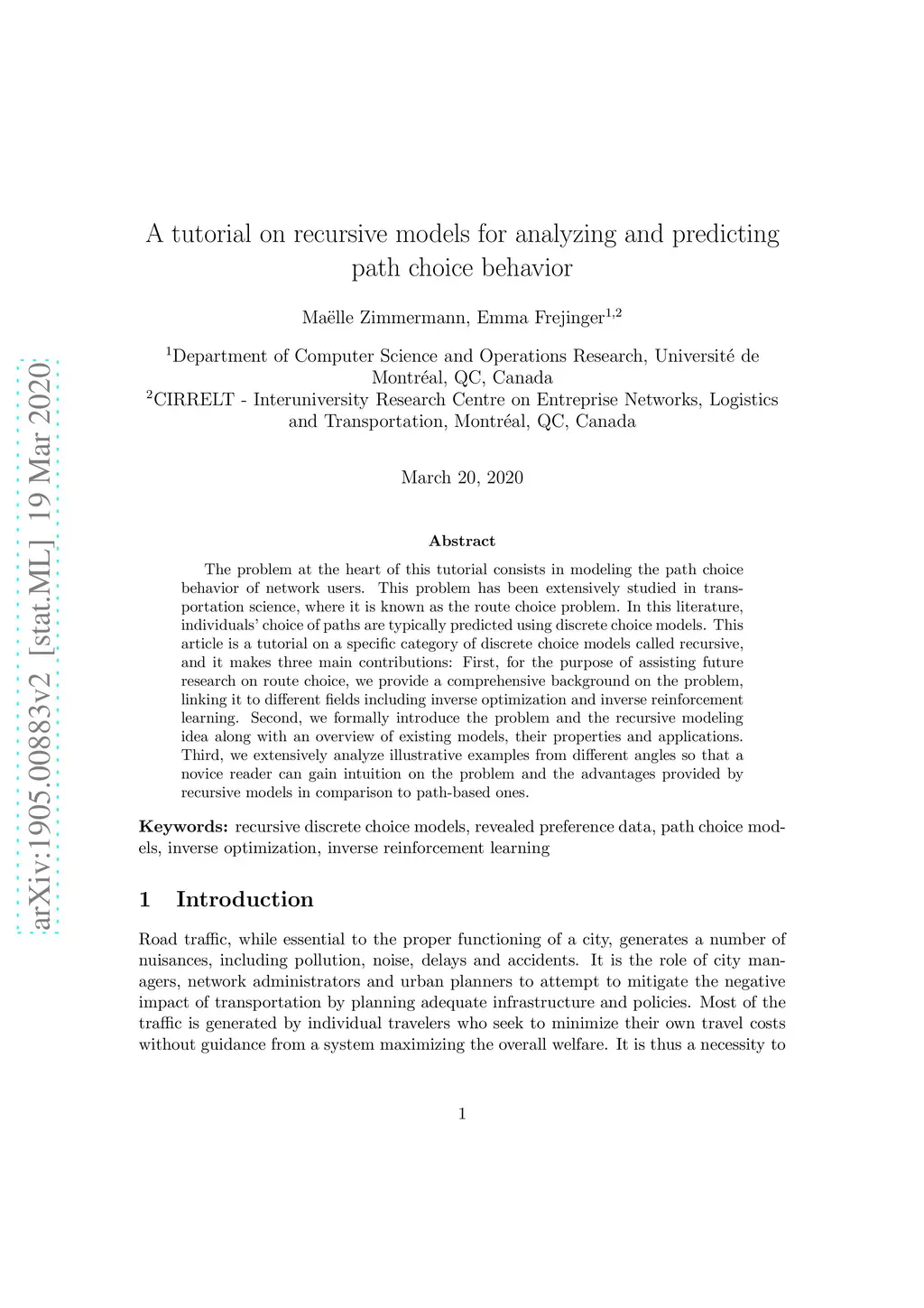The problem at the heart of this tutorial consists in modeling the path choice behavior of network users. This problem has been extensively studied in transportation science, where it is known as the route choice problem. In this literature, individuals' choice of paths are typically predicted using discrete choice models. This article is a tutorial on a specific category of discrete choice models called recursive, and it makes three main contributions: First, for the purpose of assisting future research on route choice, we provide a comprehensive background on the problem, linking it to different fields including inverse optimization and inverse reinforcement learning. Second, we formally introduce the problem and the recursive modeling idea along with an overview of existing models, their properties and applications. Third, we extensively analyze illustrative examples from different angles so that a novice reader can gain intuition on the problem and the advantages provided by recursive models in comparison to path-based ones.