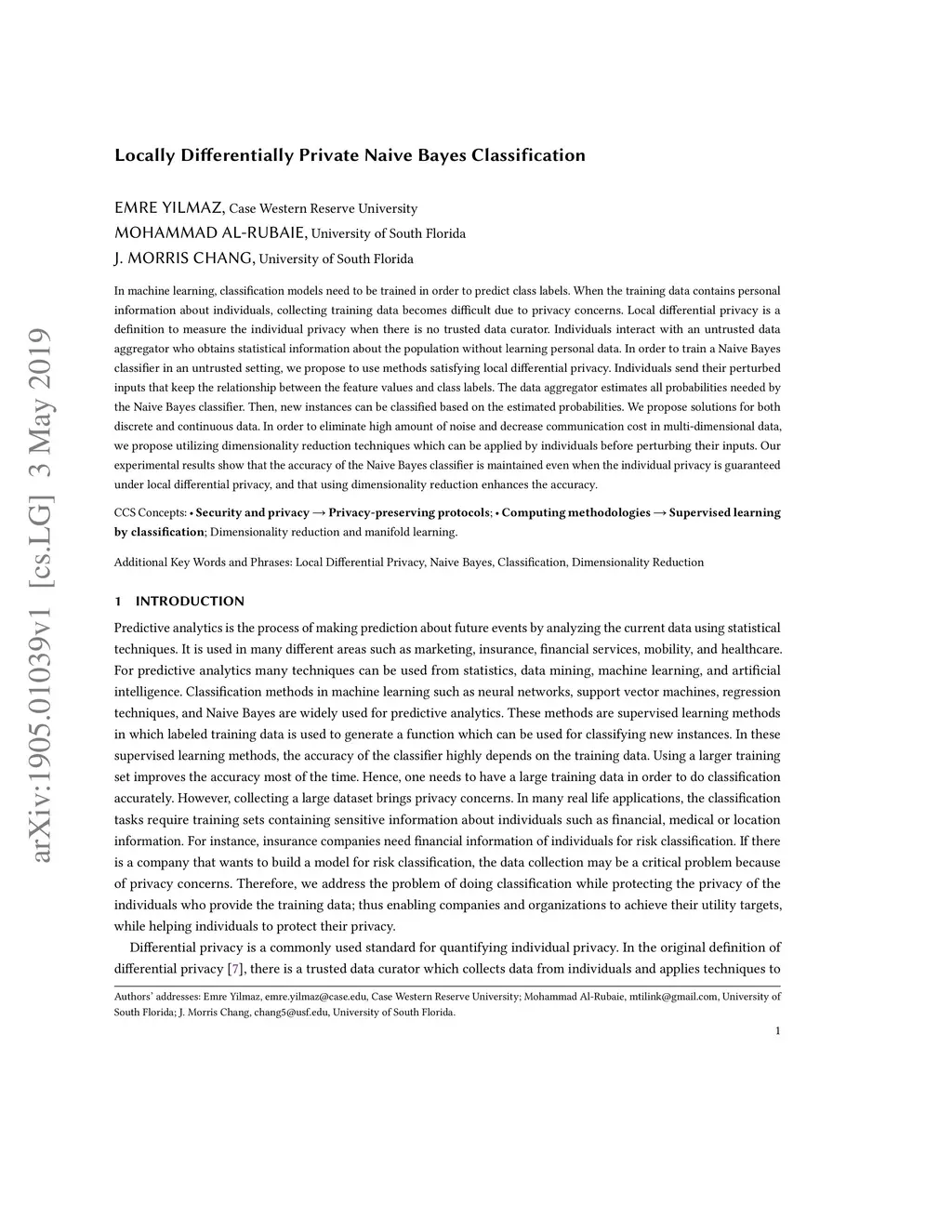 Locally Differentially Private Naive Bayes Classification
