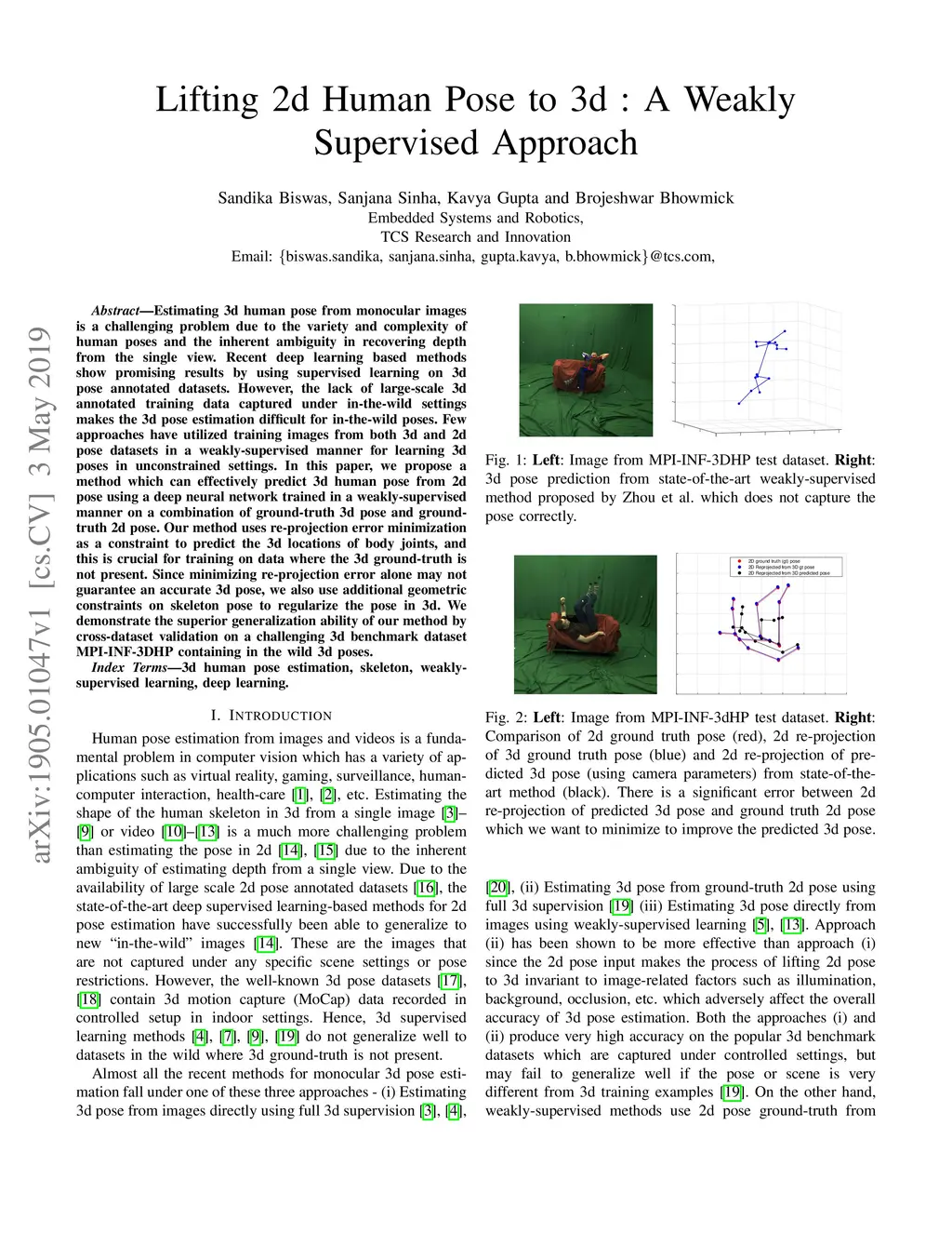 Lifting 2d Human Pose to 3d : A Weakly Supervised Approach