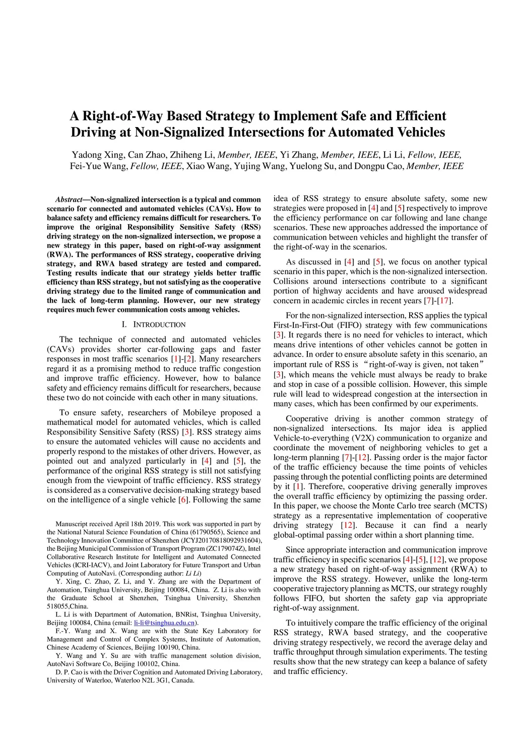A Right-of-Way Based Strategy to Implement Safe and Efficient Driving at