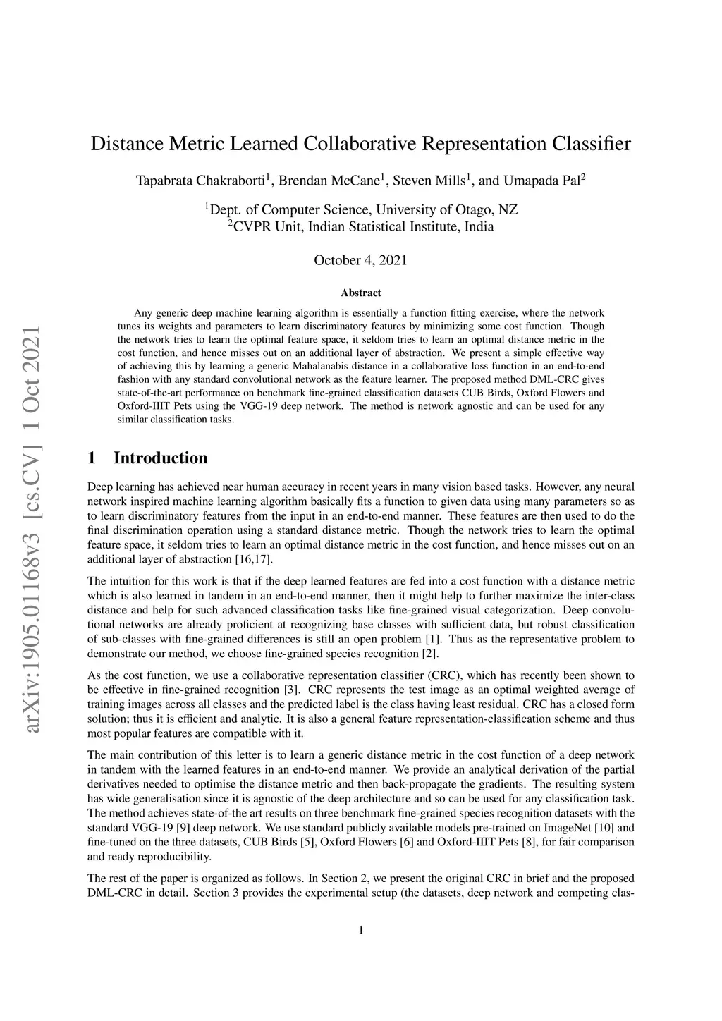 Any generic deep machine learning algorithm is essentially a function fitting exercise, where the network tunes its weights and parameters to learn discriminatory features by minimizing some cost function. Though the network tries to learn the optimal feature space, it seldom tries to learn an optimal distance metric in the cost function, and hence misses out on an additional layer of abstraction. We present a simple effective way of achieving this by learning a generic Mahalanabis distance in a collaborative loss function in an end-to-end fashion with any standard convolutional network as the feature learner. The proposed method DML-CRC gives state-of-the-art performance on benchmark fine-grained classification datasets CUB Birds, Oxford Flowers and Oxford-IIIT Pets using the VGG-19 deep network. The method is network agnostic and can be used for any similar classification tasks.