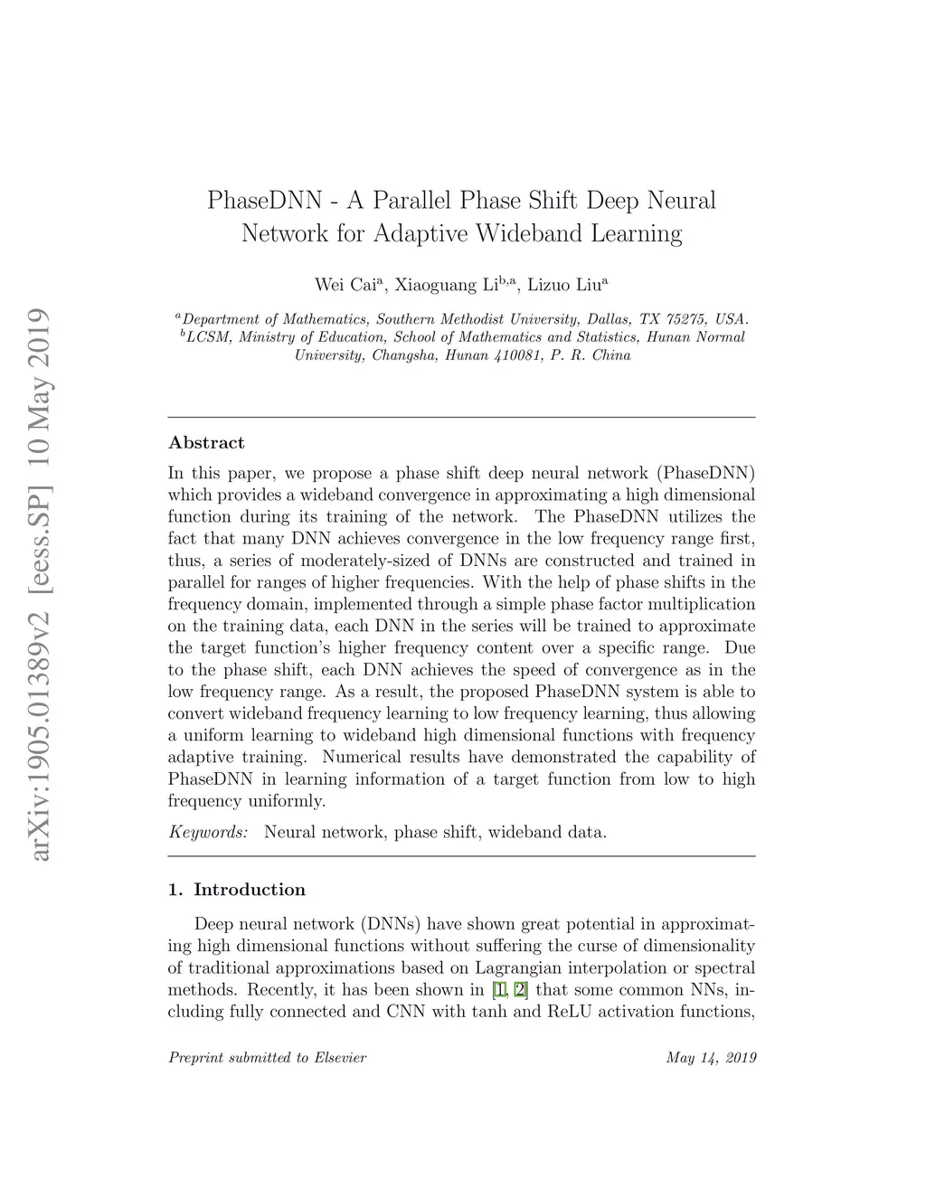 PhaseDNN - A Parallel Phase Shift Deep Neural Network for Adaptive