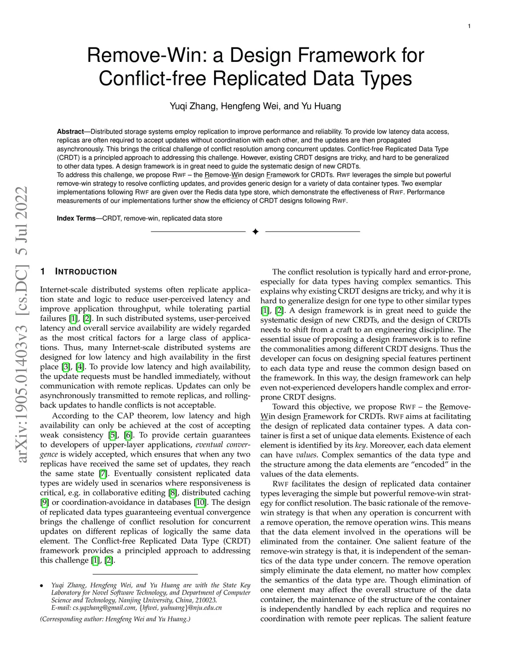 Distributed storage systems employ replication to improve performance and reliability. To provide low latency data access, replicas are often required to accept updates without coordination with each other, and the updates are then propagated asynchronously. This brings the critical challenge of conflict resolution among concurrent updates. Conflict-free Replicated Data Type (CRDT) is a principled approach to addressing this challenge. However, existing CRDT designs are tricky, and hard to be generalized to other data types. A design framework is in great need to guide the systematic design of new CRDTs. To address this challenge, we propose RWF -- the Remove-Win design Framework for CRDTs. RWF leverages the simple but powerful remove-win strategy to resolve conflicting updates, and provides generic design for a variety of data container types. Two exemplar implementations following RWF are given over the Redis data type store, which demonstrate the effectiveness of RWF. Performance measurements of our implementations further show the efficiency of CRDT designs following RWF.