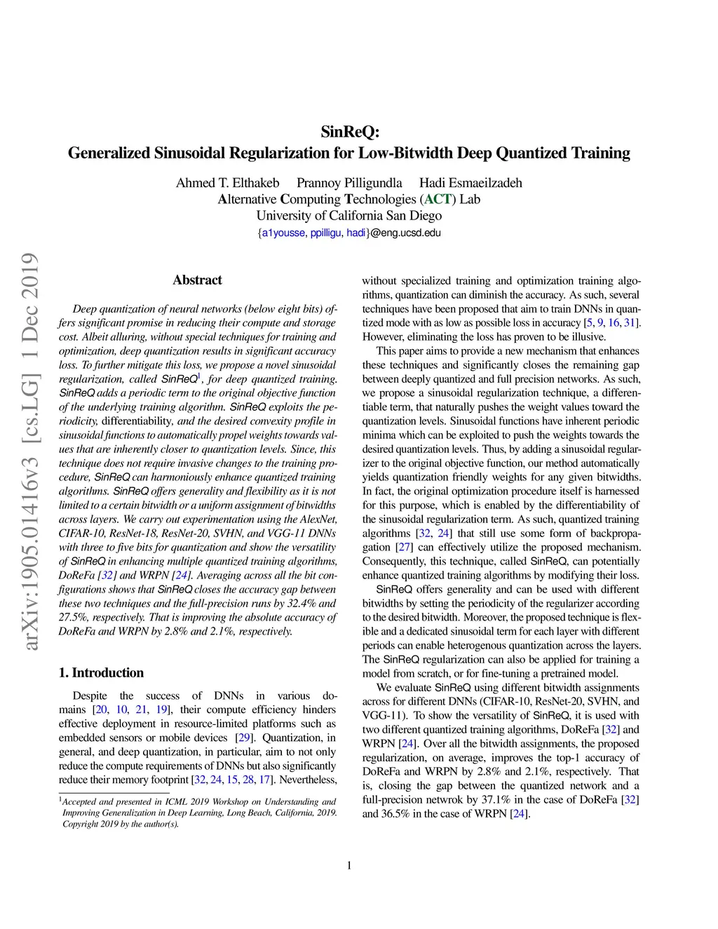 SinReQ: Generalized Sinusoidal Regularization for Low-Bitwidth Deep