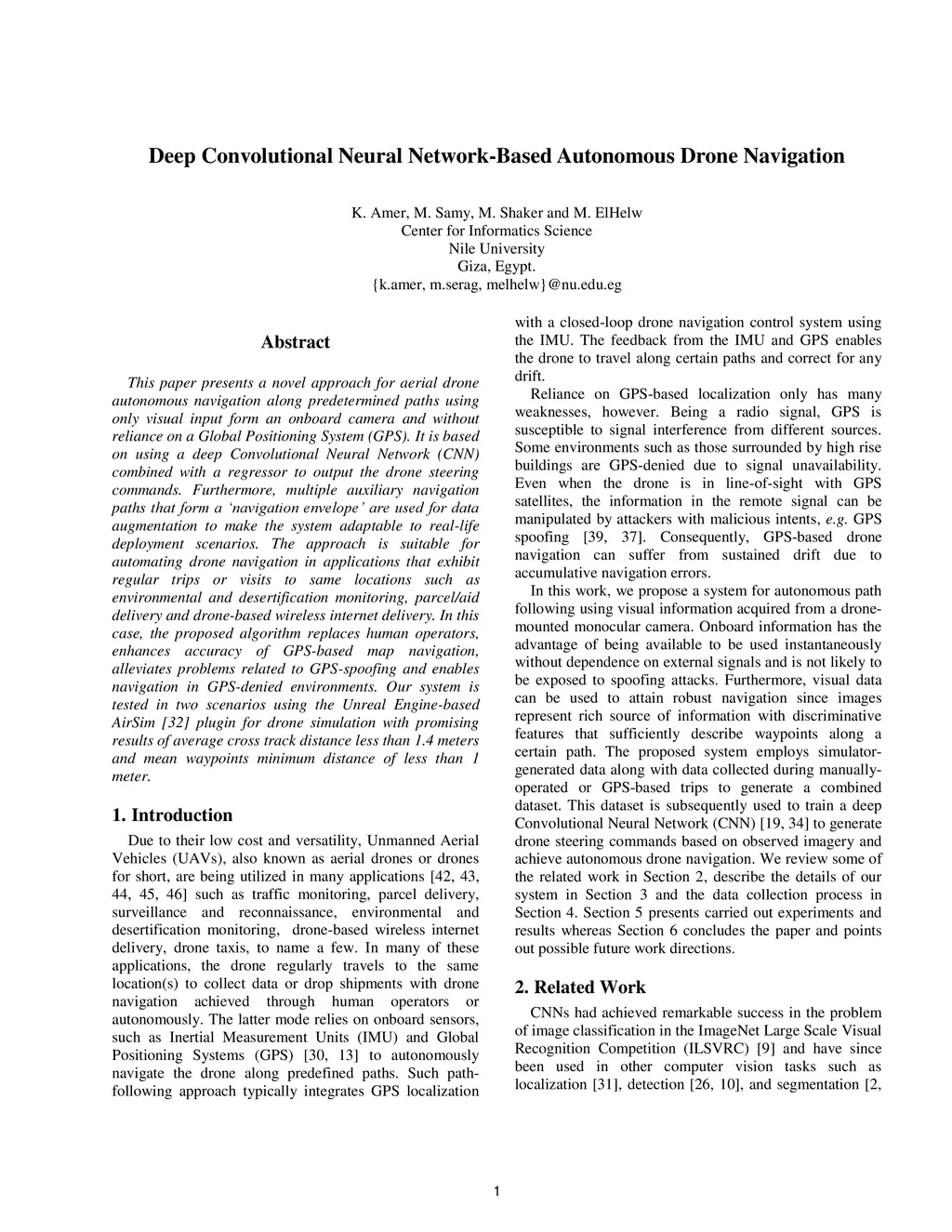 Deep Convolutional Neural Network-Based Autonomous Drone Navigation