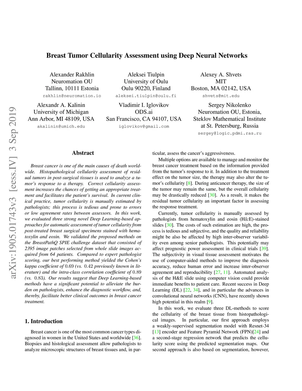 Breast Tumor Cellularity Assessment using Deep Neural Networks