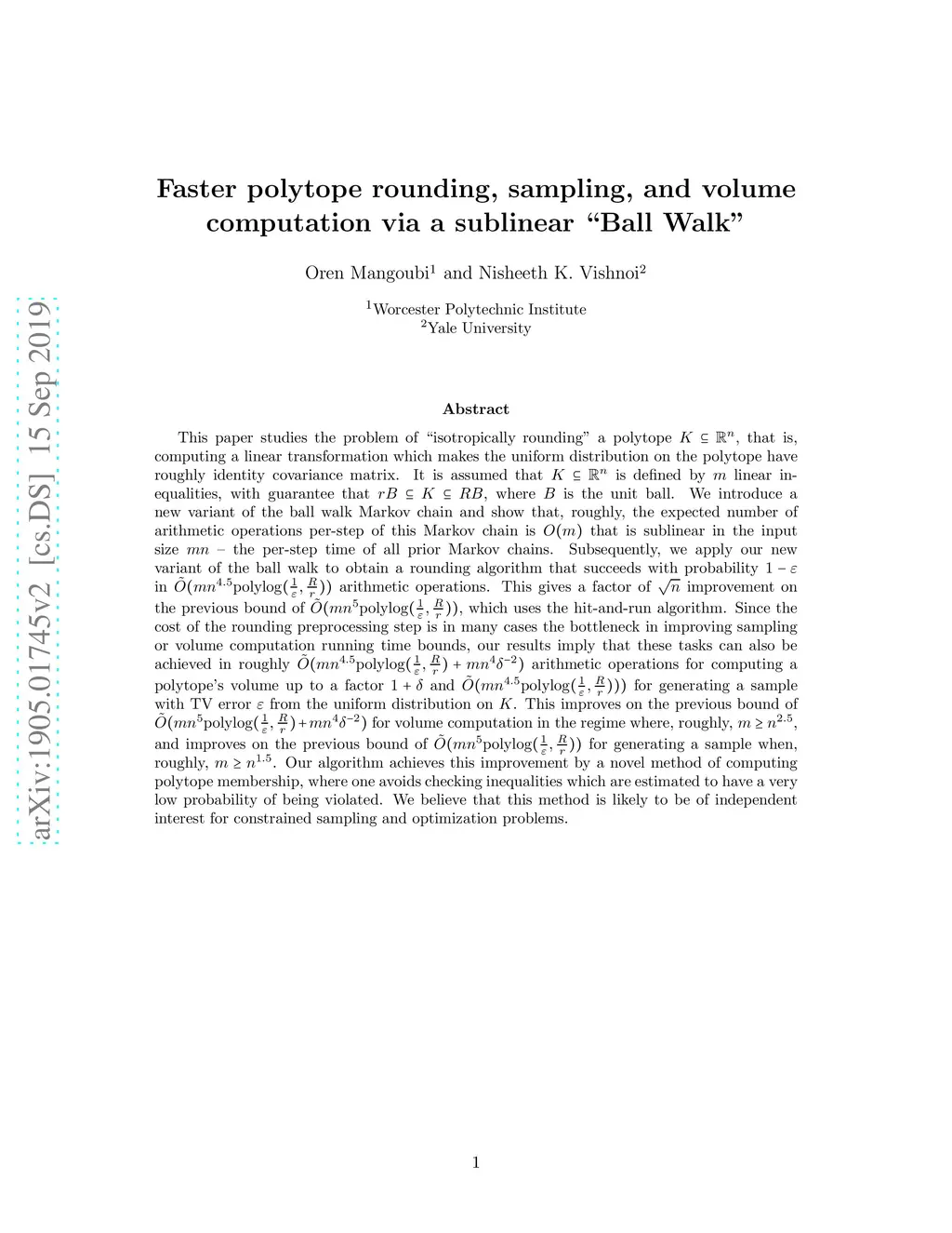 We study the problem of "isotropically rounding" a polytope , that is, computing a linear transformation which makes the uniform distribution on the polytope have roughly identity covariance matrix. We assume is defined by linear inequalities, with guarantee that , where is the unit ball. We introduce a new variant of the ball walk Markov chain and show that, roughly, the expected number of arithmetic operations per-step of this Markov chain is that is sublinear in the input size --the per-step time of all prior Markov chains. Subsequently, we give a rounding algorithm that succeeds with probability in arithmetic operations. This gives a factor of improvement on the previous bound of for rounding, which uses the hit-and-run algorithm. Since the rounding preprocessing step is in many cases the bottleneck in improving sampling or volume computation, our results imply these tasks can also be achieved in roughly operations for computing the volume of up to a factor and for uniformly sampling on with TV error . This improves on the previous bounds of for volume computation when roughly , and for sampling when roughly . We achieve this improvement by a novel method of computing polytope membership, where one avoids checking inequalities estimated to have a very low probability of being violated.