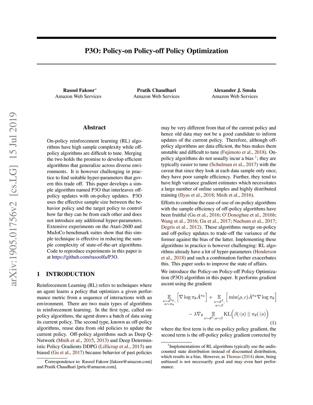 P3O: Policy-on Policy-off Policy Optimization