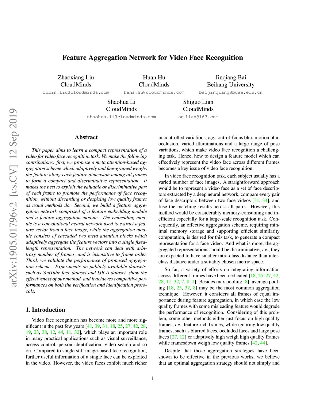 Feature Aggregation Network for Video Face Recognition