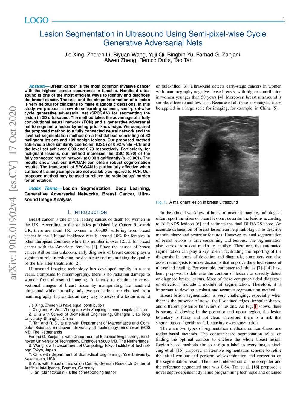 Lesion Segmentation in Ultrasound Using Semi-pixel-wise Cycle Generative