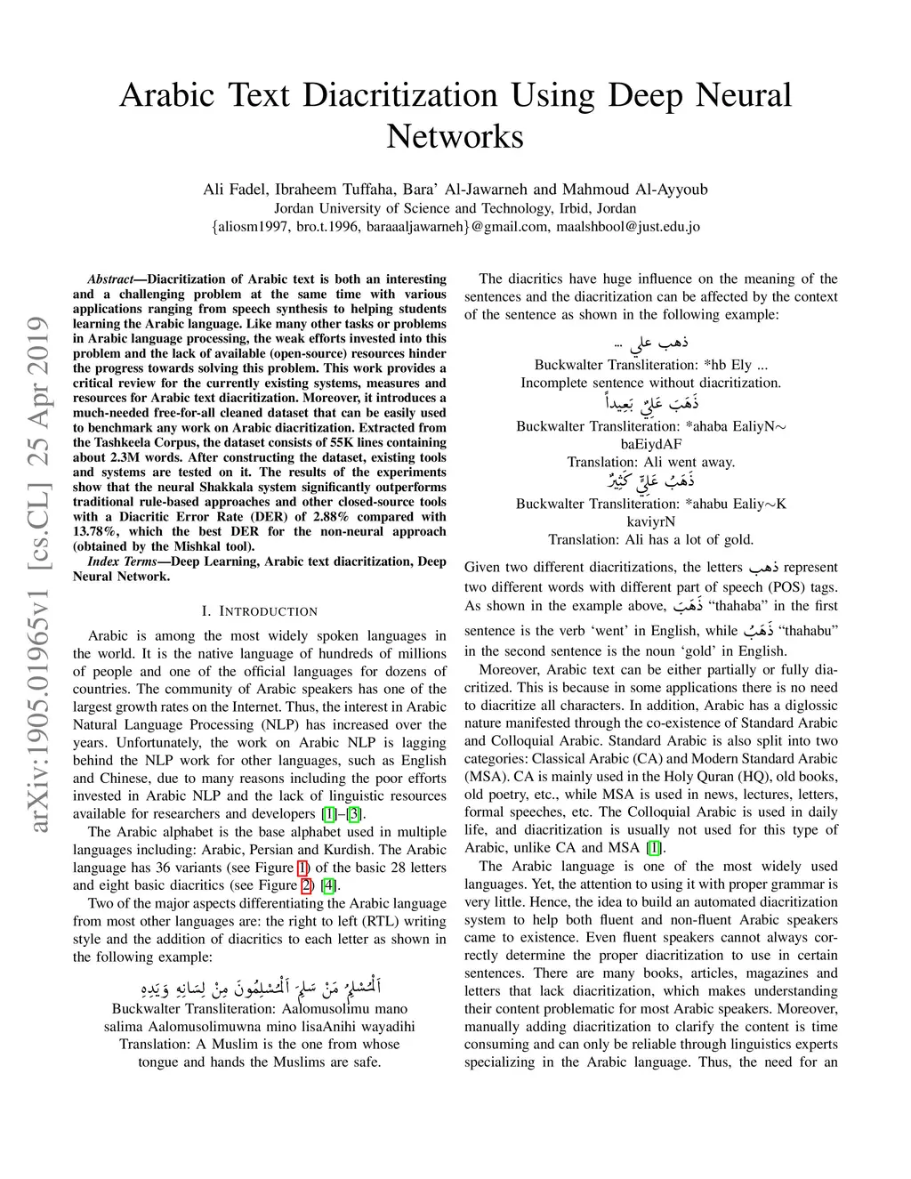 Arabic Text Diacritization Using Deep Neural Networks