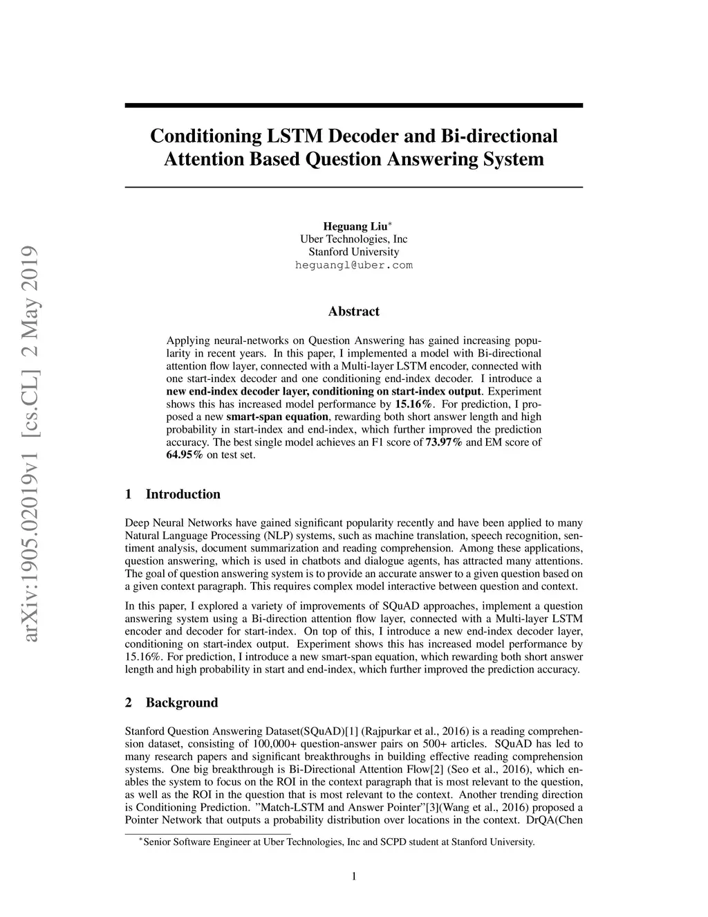 Applying neural-networks on Question Answering has gained increasing popularity in recent years. In this paper, I implemented a model with Bi-directional attention flow layer, connected with a Multi-layer LSTM encoder, connected with one start-index decoder and one conditioning end-index decoder. I introduce a new end-index decoder layer, conditioning on start-index output. The Experiment shows this has increased model performance by 15.16%. For prediction, I proposed a new smart-span equation, rewarding both short answer length and high probability in start-index and end-index, which further improved the prediction accuracy. The best single model achieves an F1 score of 73.97% and EM score of 64.95% on test set.