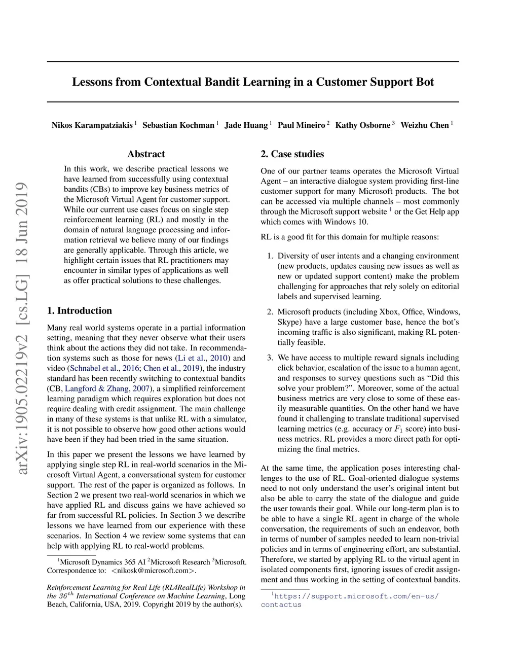 Lessons from Contextual Bandit Learning in a Customer Support Bot