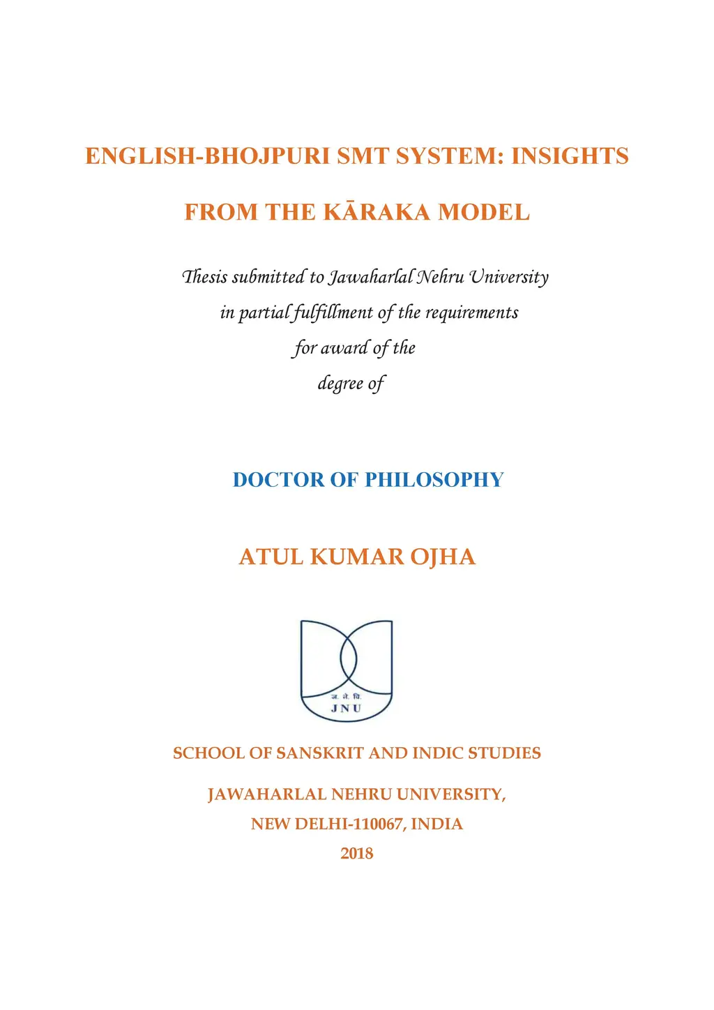 This thesis has been divided into six chapters namely: Introduction, Karaka Model and it impacts on Dependency Parsing, LT Resources for Bhojpuri, English-Bhojpuri SMT System: Experiment, Evaluation of EB-SMT System, and Conclusion. Chapter one introduces this PhD research by detailing the motivation of the study, the methodology used for the study and the literature review of the existing MT related work in Indian Languages. Chapter two talks of the theoretical background of Karaka and Karaka model. Along with this, it talks about previous related work. It also discusses the impacts of the Karaka model in NLP and dependency parsing. It compares Karaka dependency and Universal Dependency. It also presents a brief idea of the implementation of these models in the SMT system for English-Bhojpuri language pair.