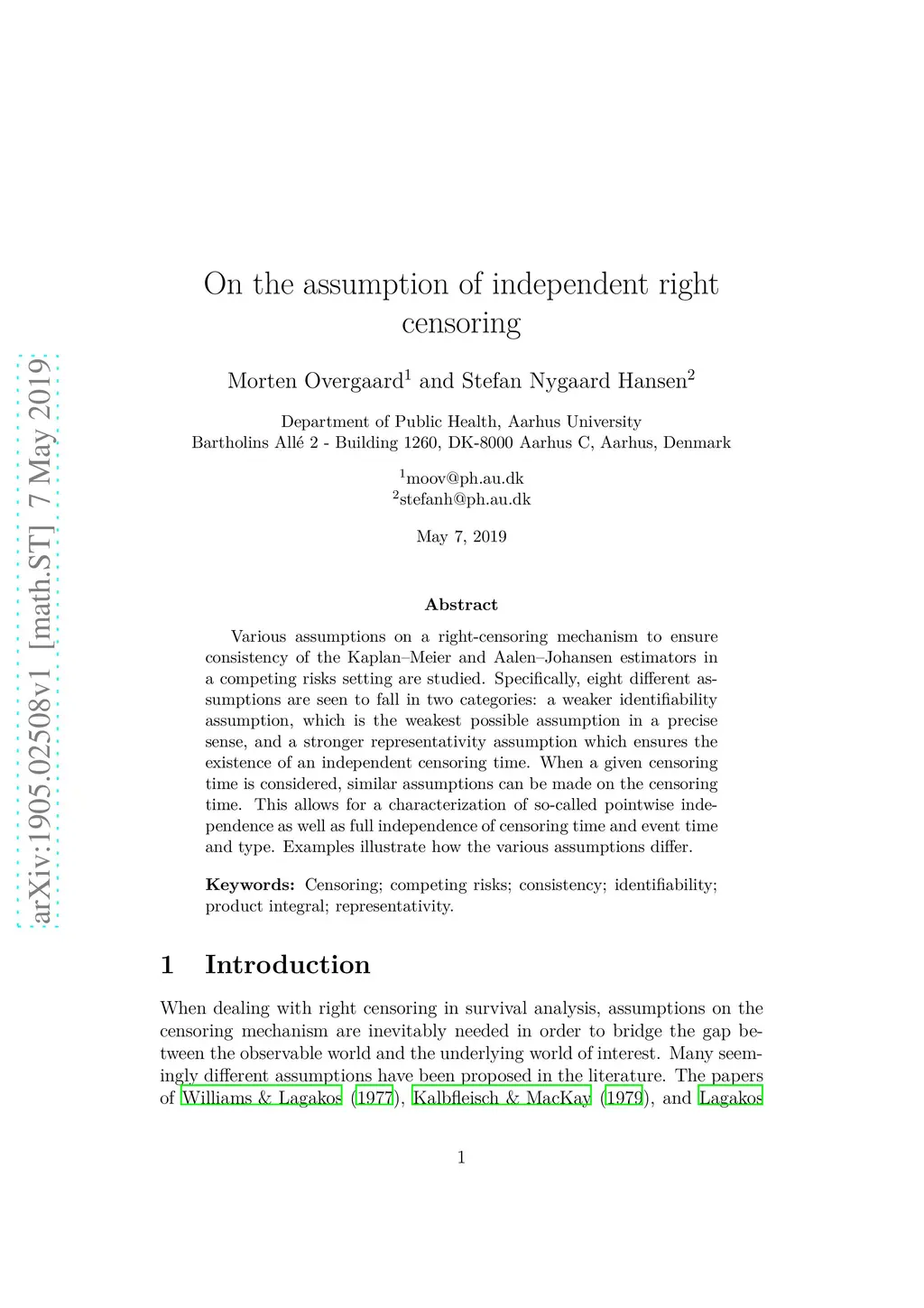 Various assumptions on a right-censoring mechanism to ensure consistency of the Kaplan--Meier and Aalen--Johansen estimators in a competing risks setting are studied. Specifically, eight different assumptions are seen to fall in two categories: a weaker identifiability assumption, which is the weakest possible assumption in a precise sense, and a stronger representativity assumption which ensures the existence of an independent censoring time. When a given censoring time is considered, similar assumptions can be made on the censoring time. This allows for a characterization of so-called pointwise independence as well as full independence of censoring time and event time and type. Examples illustrate how the various assumptions differ.