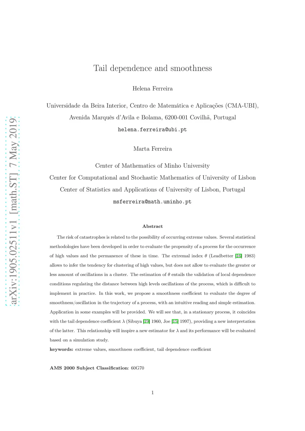 The risk of catastrophes is related to the possibility of occurring extreme values. Several statistical methodologies have been developed in order to evaluate the propensity of a process for the occurrence of high values and the permanence of these in time. The extremal index (Leadbetter 1983) allows to infer the tendency for clustering of high values, but does not allow to evaluate the greater or less amount of oscillations in a cluster. The estimation of entails the validation of local dependence conditions regulating the distance between high levels oscillations of the process, which is difficult to implement in practice. In this work, we propose a smoothness coefficient to evaluate the degree of smoothness/oscillation in the trajectory of a process, with an intuitive reading and simple estimation. Application in some examples will be provided. We will see that, in a stationary process, it coincides with the tail dependence coefficient (Sibuya 1960, Joe 1997), providing a new interpretation of the latter. This relationship will inspire a new estimator for and its performance will be evaluated based on a simulation study.