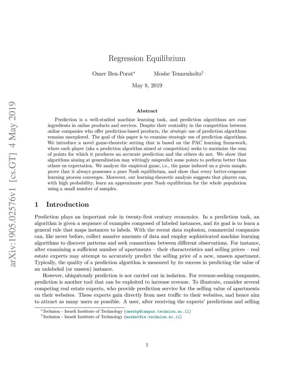Prediction is a well-studied machine learning task, and prediction algorithms are core ingredients in online products and services. Despite their centrality in the competition between online companies who offer prediction-based products, the \textit{strategic} use of prediction algorithms remains unexplored. The goal of this paper is to examine strategic use of prediction algorithms. We introduce a novel game-theoretic setting that is based on the PAC learning framework, where each player (aka a prediction algorithm aimed at competition) seeks to maximize the sum of points for which it produces an accurate prediction and the others do not. We show that algorithms aiming at generalization may wittingly mispredict some points to perform better than others on expectation. We analyze the empirical game, i.e., the game induced on a given sample, prove that it always possesses a pure Nash equilibrium, and show that every better-response learning process converges. Moreover, our learning-theoretic analysis suggests that players can, with high probability, learn an approximate pure Nash equilibrium for the whole population using a small number of samples.