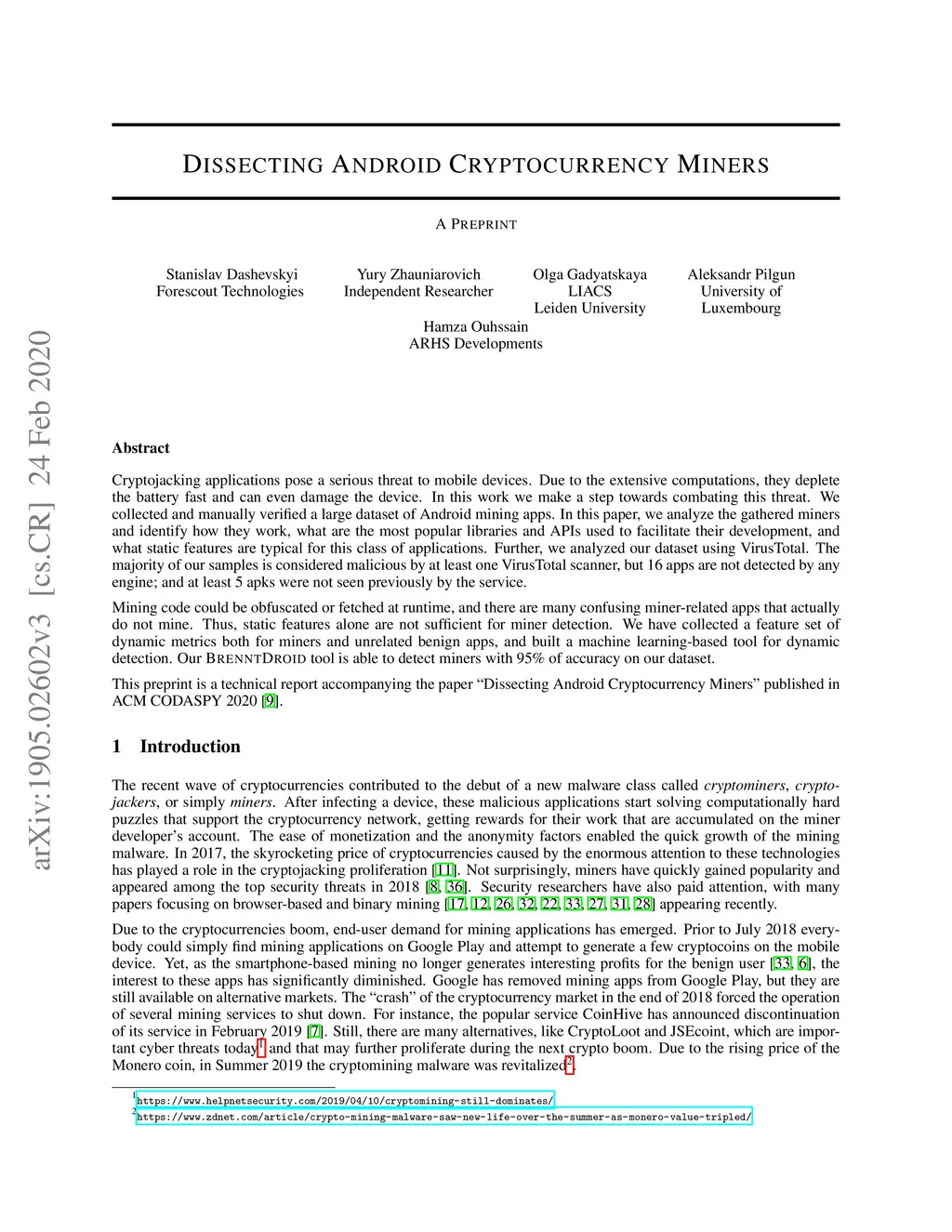 Dissecting Android Cryptocurrency Miners