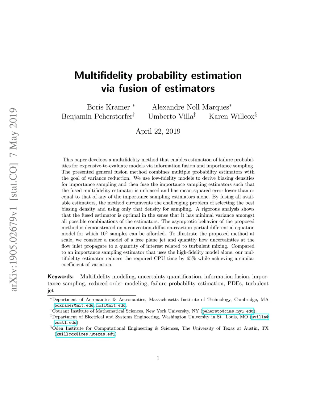 Multifidelity probability estimation via fusion of estimators