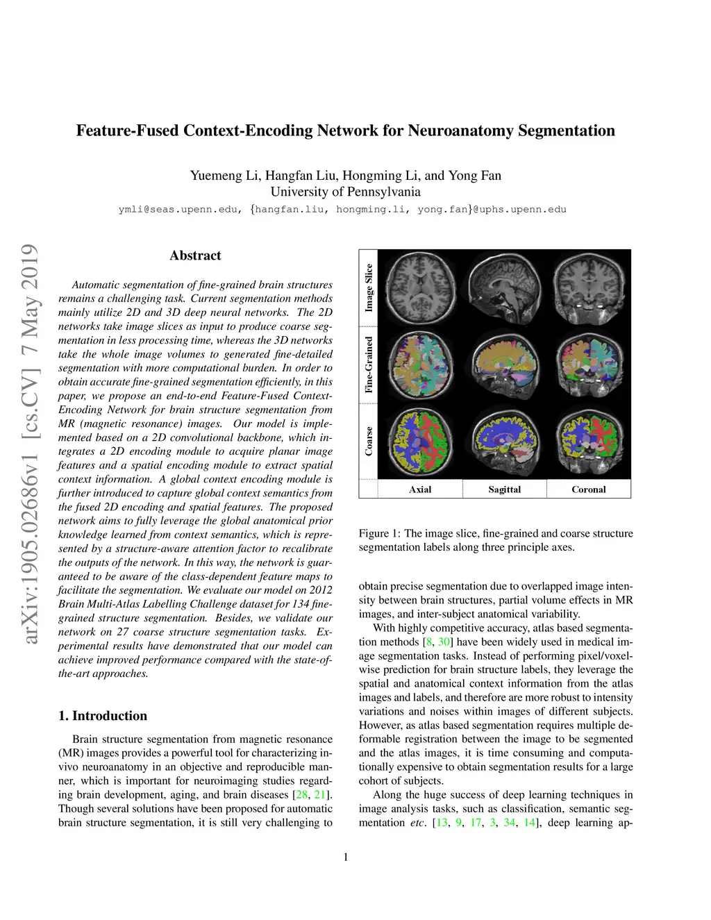 Feature-Fused Context-Encoding Network for Neuroanatomy Segmentation