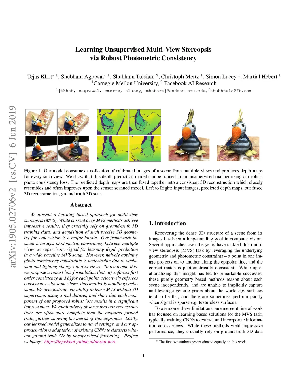 Learning Unsupervised Multi-View Stereopsis via Robust Photometric
