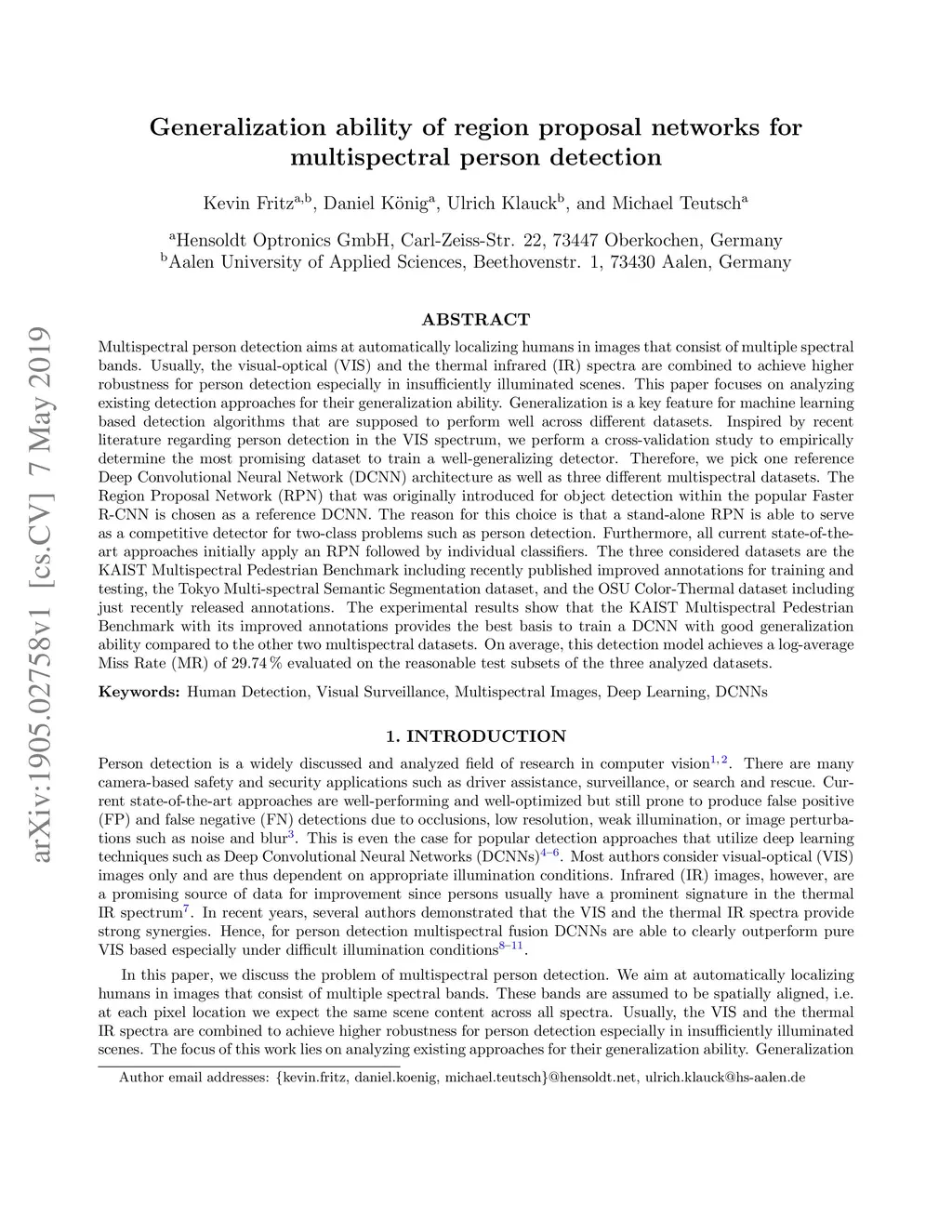 Generalization ability of region proposal networks for multispectral